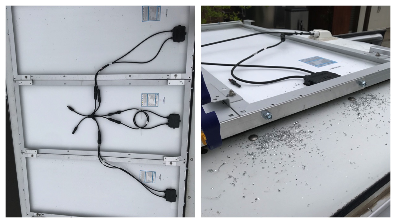 Previously, the two solar panels on the roof of the van were connected in series. I did this because when they are connected in series, the voltage is higher across the wires and therefore less current is needed to generate the same wattage. Less current means smaller gauge wires can be used.