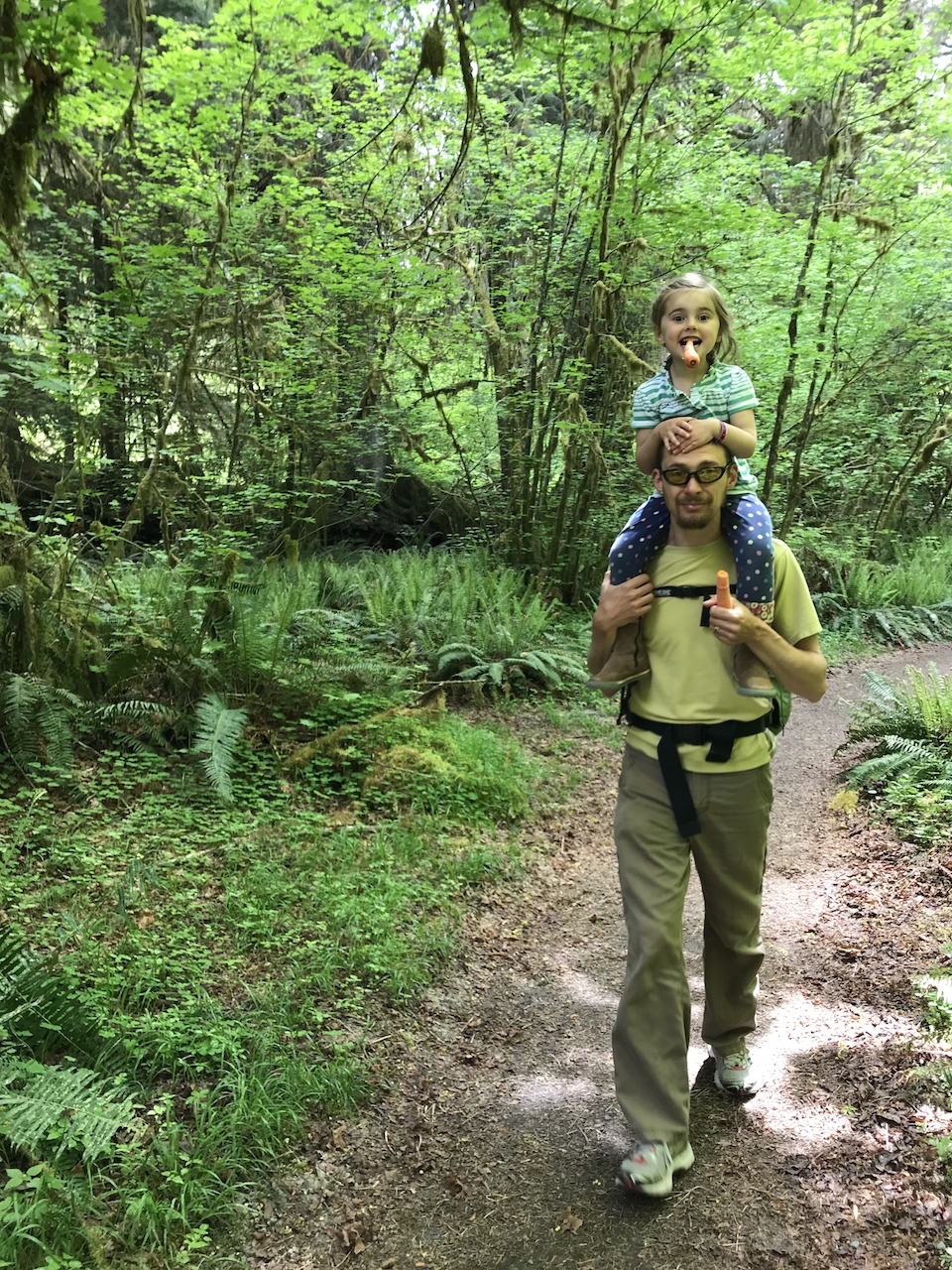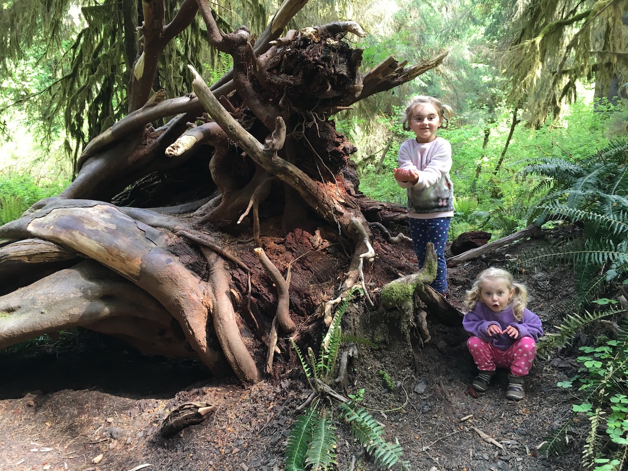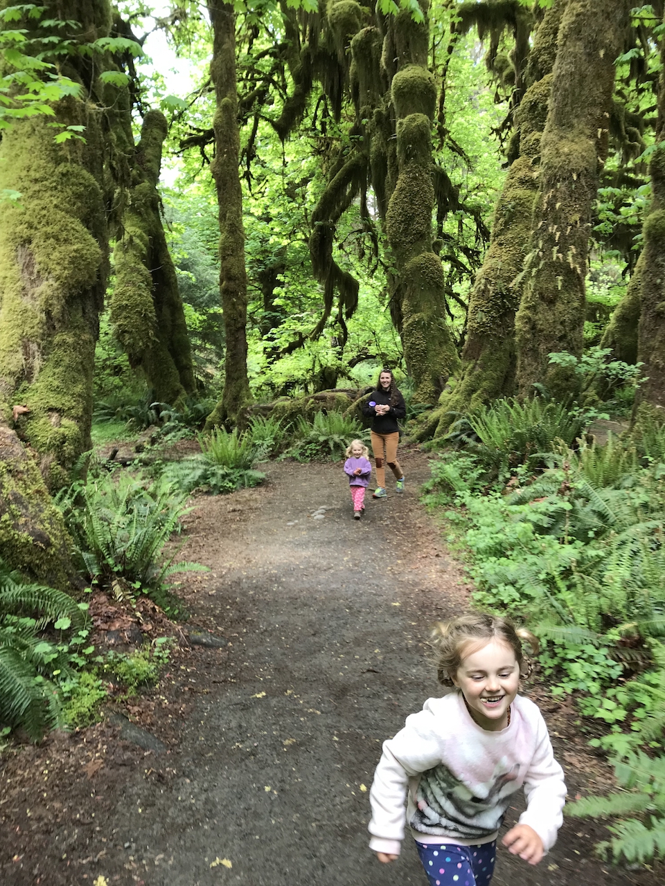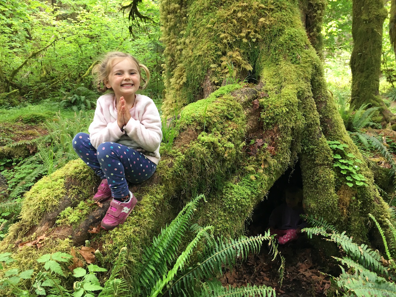 We stayed in a rainforest for 3 nights though our girls didn’t believe it was a rainforest (it didn’t rain once while we were there). The campground was beautiful, and I think we got the best spot right next to the river. We enjoyed some short hikes in the mossy forest, playing by the river, and riding bikes around the campground.