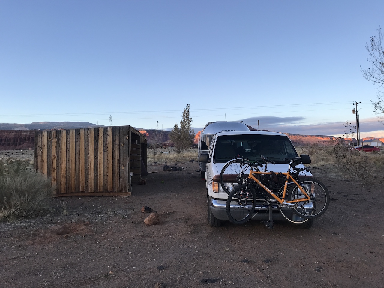 Using the tips the rangers gave us, we ventured onto Burr Trail Road which we were told had many camping spots. The first pull-off we found looked good enough. Not ideal but fine for a night or two. Despite the fairly steep slope getting into the site it was easy to maneuver into. We were hoping to stay hitched since it was for a short time. However, we were a little off kilter side to side so we attempted to use our leveler blocks to raise one side. And this is when the trouble started…