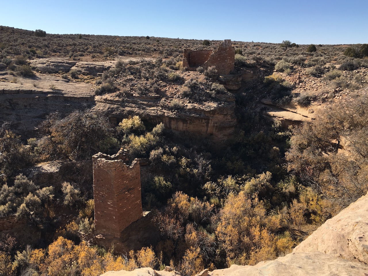 We got a late start on our departure from Moab, since we all wanted showers in the morning, and then we took a long pit stop at Hole N’ The Rock on the way.  Therefore we didn’t roll into the first come first serve campground at Hovenweep National Monument until around 4:00pm.  Just in time to make dinner!