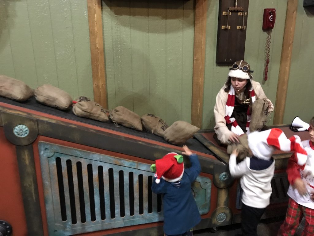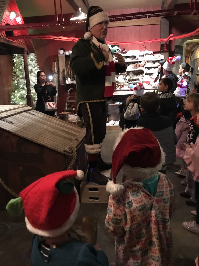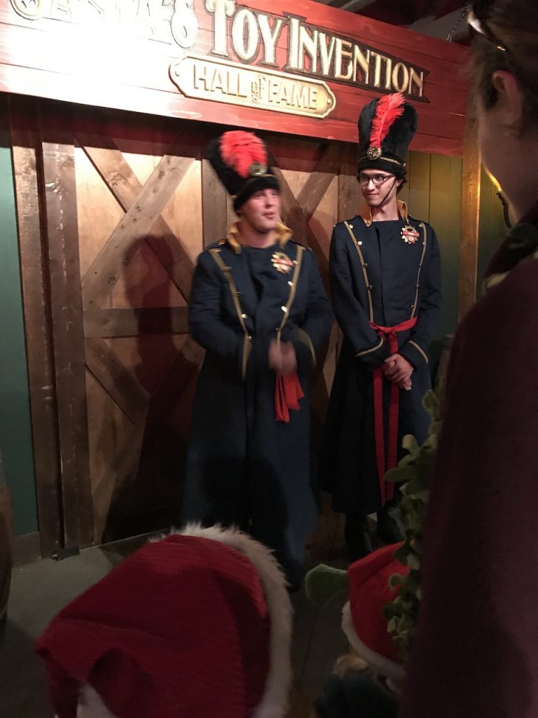 Once we got to Santa’s place we explored room after room of the magic of Christmas. First we entered the toy hall-of-fame room with two fantastic comedic guards then entered the spinning compass room which had the epic gigantic naughty and nice book.
