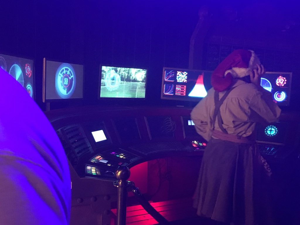 Off to the control room where we saw glimpses of the reindeer and got to peak at Santa’s sleigh.