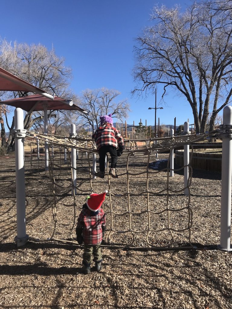 We spent the morning at one of the local playgrounds so the girls could get in some play fun. It was a chilly morning for sure but the girls thoroughly enjoyed climbing on the nets, going down the slowest slides in the world (ha! It was unreal and hilarious how slow the slides were), rock climbing up the many boulder structures and finding their way through the labyrinth.