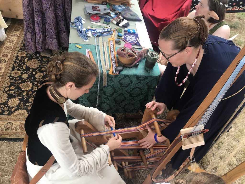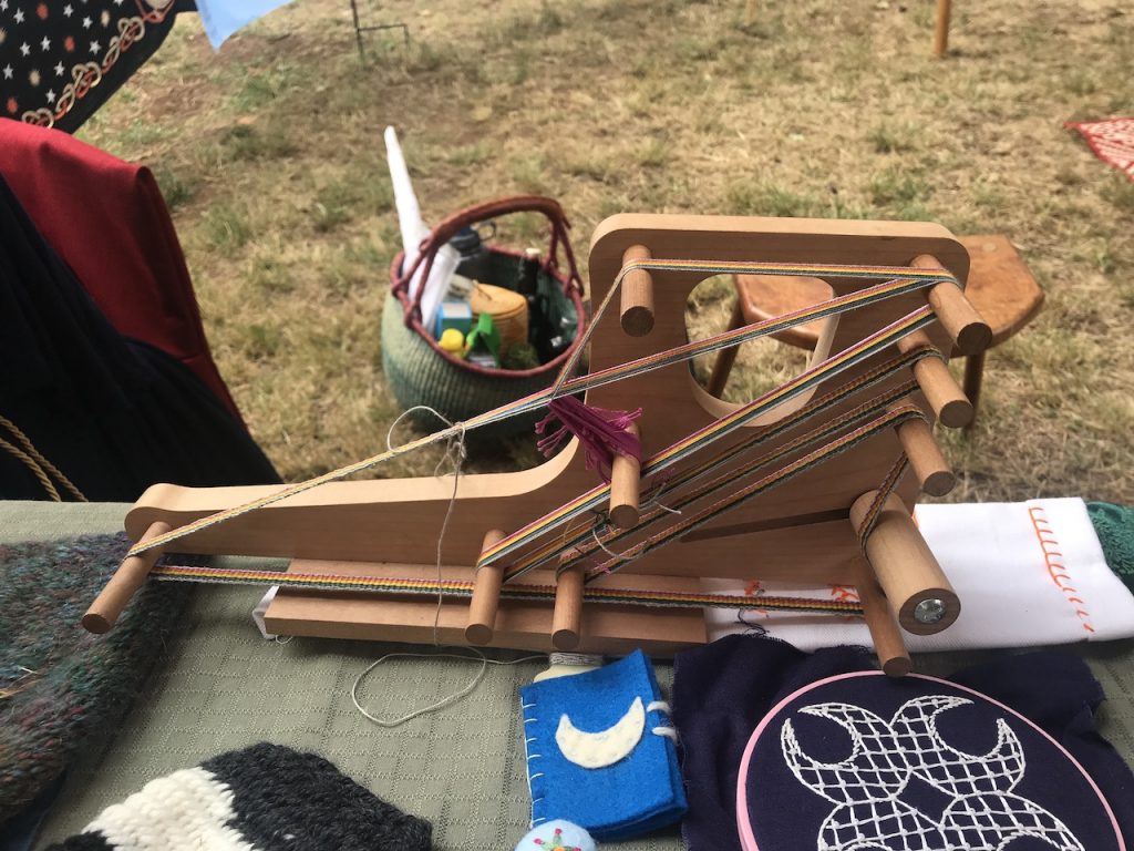 I also discovered a new craft I’d like to pick up someday in the near future; weaving on a small scale on an Inkle loom! I was able to try out their larger loom but some of the looms were so tiny it could semi-easily be kept at your feet in a car to pull out on long trips. The women at the faire had some very lovely products made with the tiny loom. Just another way to keep me busy!
