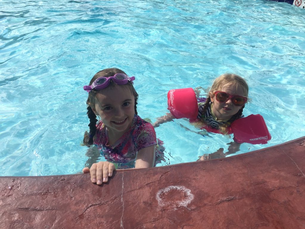 Into the pool again we went with some diving balls we found at the RV park store. So much entertainment packed into each of those diving balls! Both girls had a blast with them and our oldest made a good friend in the pool, he and she taking turns retrieving them. Well worth it!
