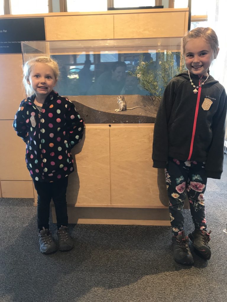If you take a magnet to the sand, it will instantly attract a ball full of black magnetic sand. It was really neat to play with for both the girls and me! The girls also made friends with a little stuffed kangaroo rat and read some books. It was a nice easy going day
