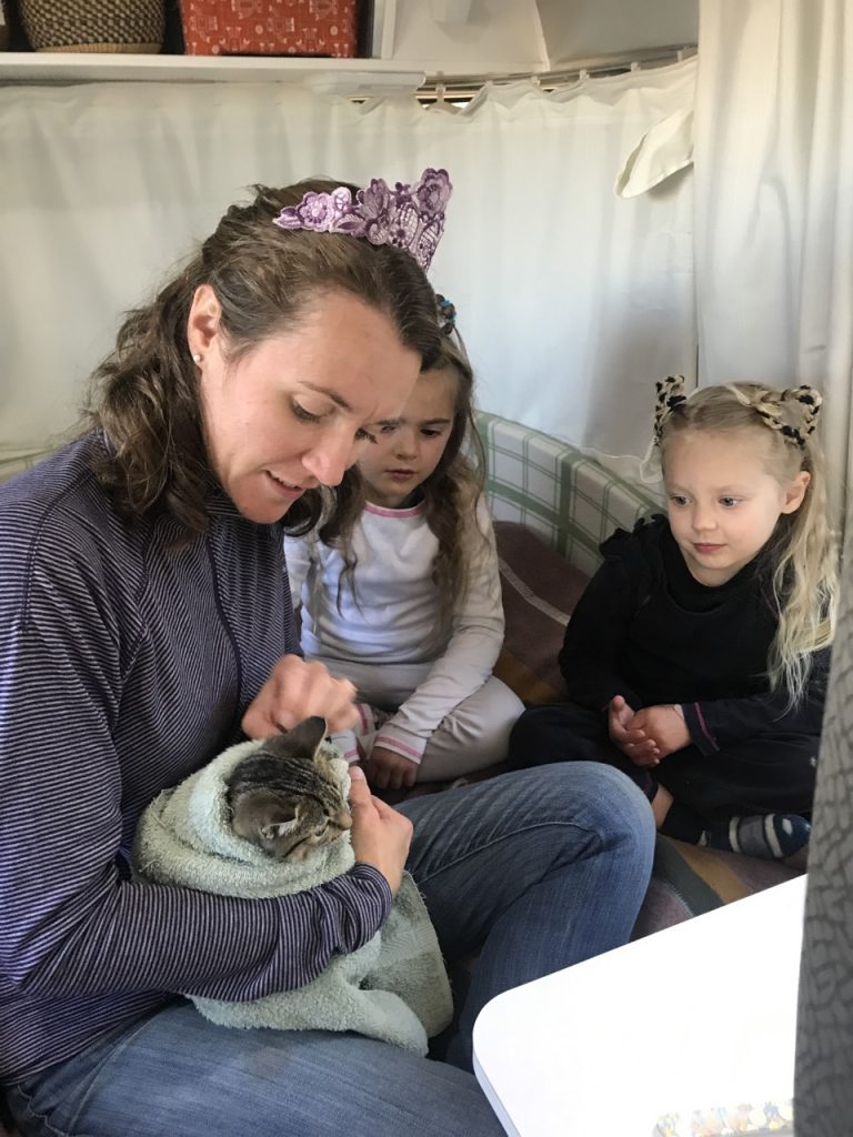 We got a little bit of a late start to the day as I wanted to be sure to clip Kara’s nails before we left for the day.  She was having trouble not climbing up our black-out curtains!