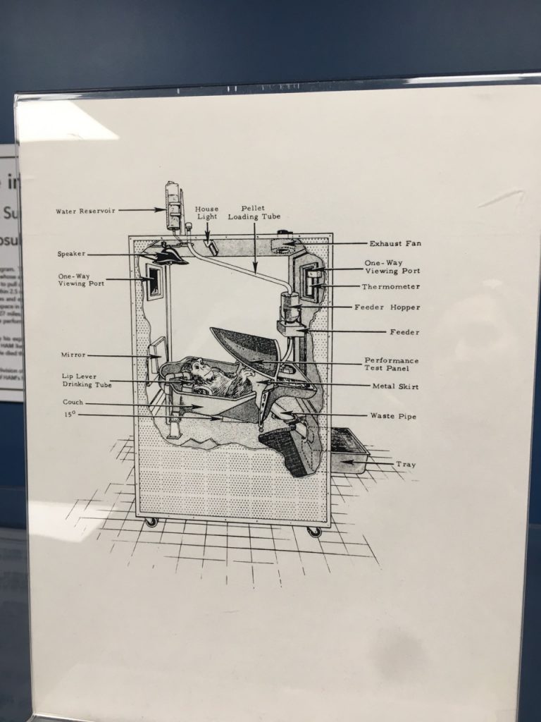 We learned about the first monkey that traveled in space through a little video and got to see the actual container in which he traveled in. Tight quarters for sure but the monkey’s 6 hour journey didn’t seem to phase him much.