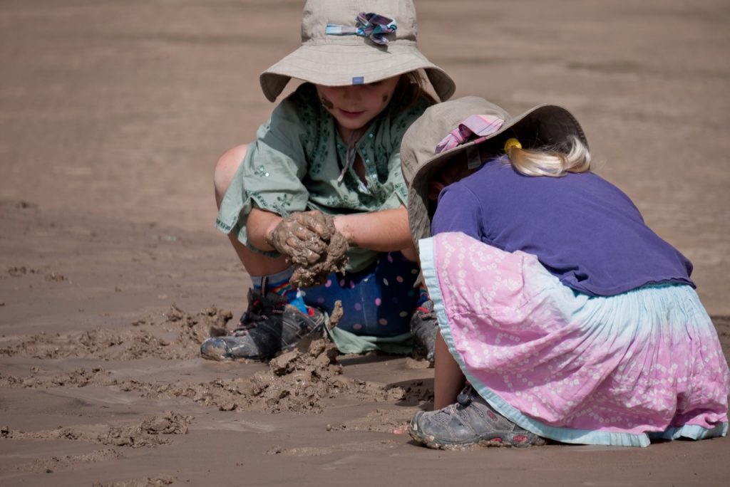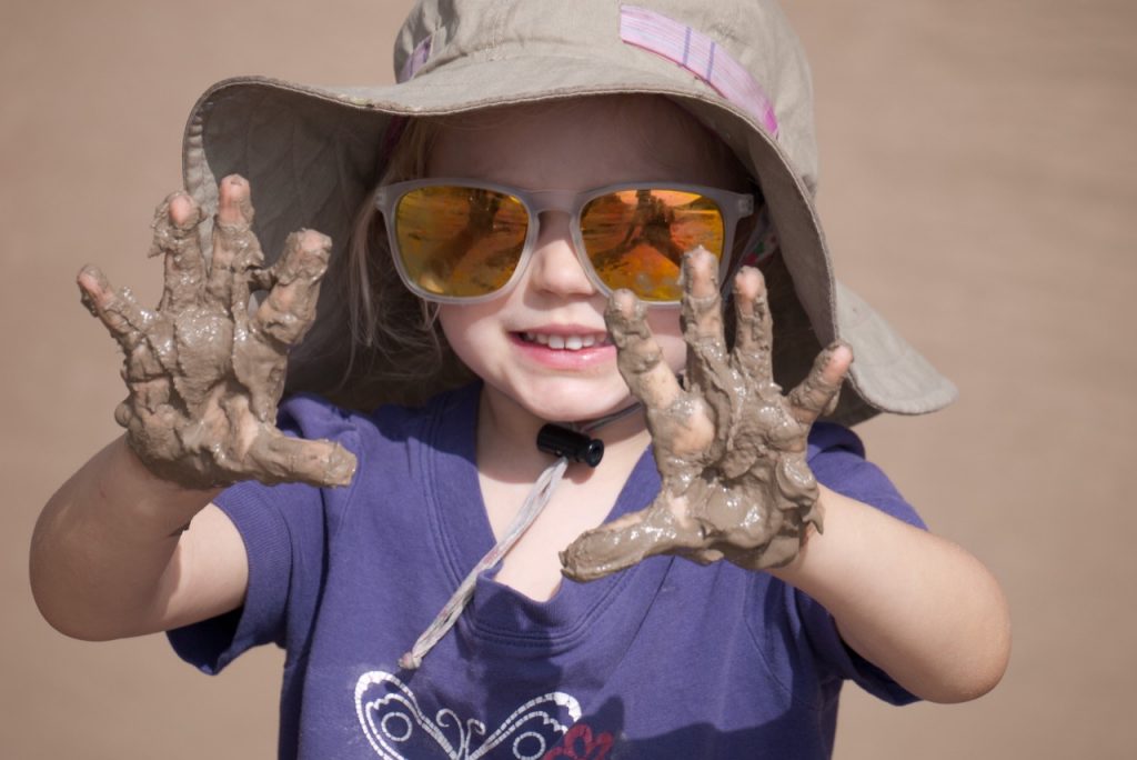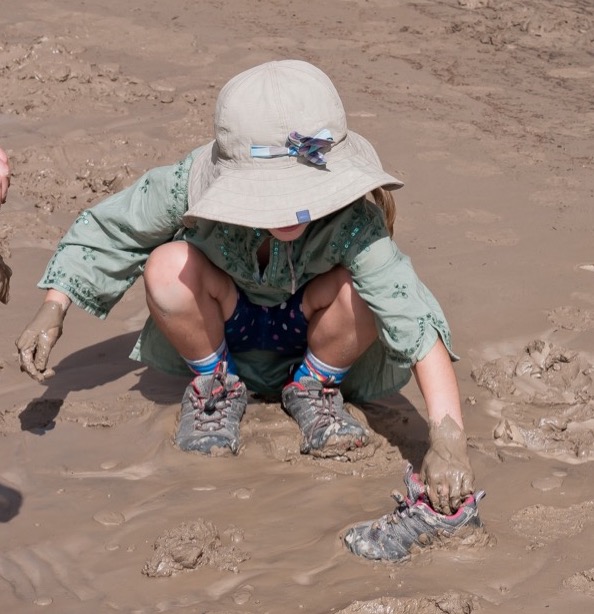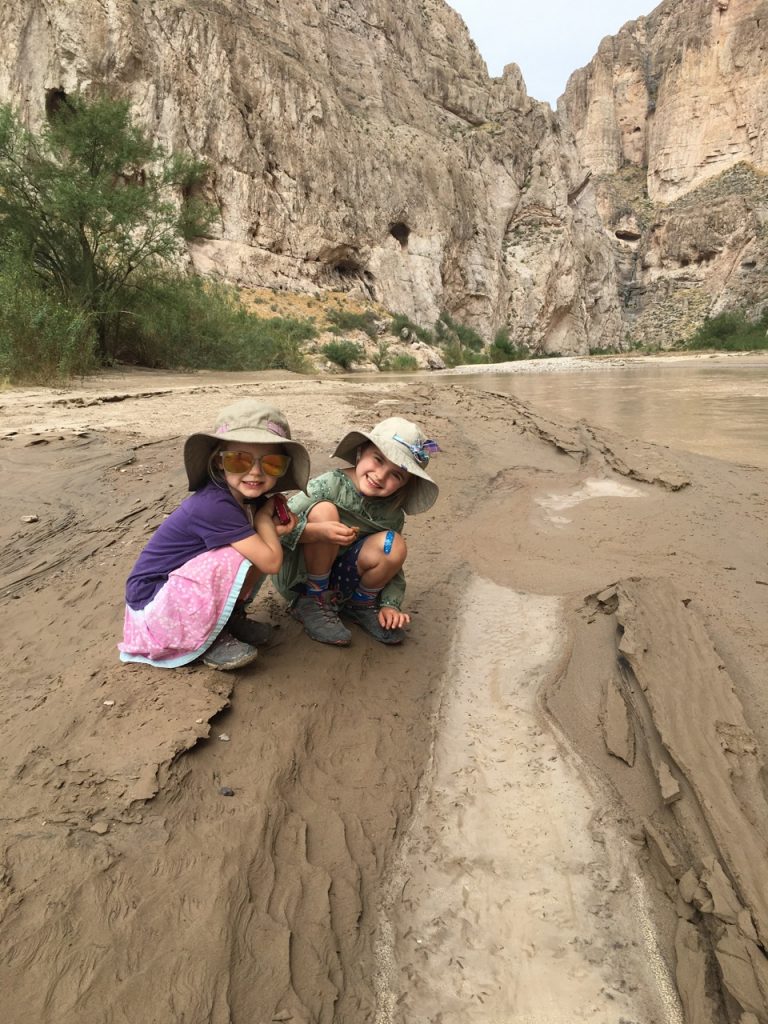 The Rio Grande was muddy for sure! It was mud and sand that lined those beaches. In fact, the mud was so sticky it held the girls shoes tight. I thought they were exaggerating until I tried to pull them out of it and couldn’t get their shoes to budge. I yanked and yanked and finally out popped my girls but the shoes were still stuck. With a bit of effort we pulled them free. From then on we stuck to the slightly rockier places. It was great mud for playing in though. Sticky clay-like soft squishy mud. Can’t beat that!