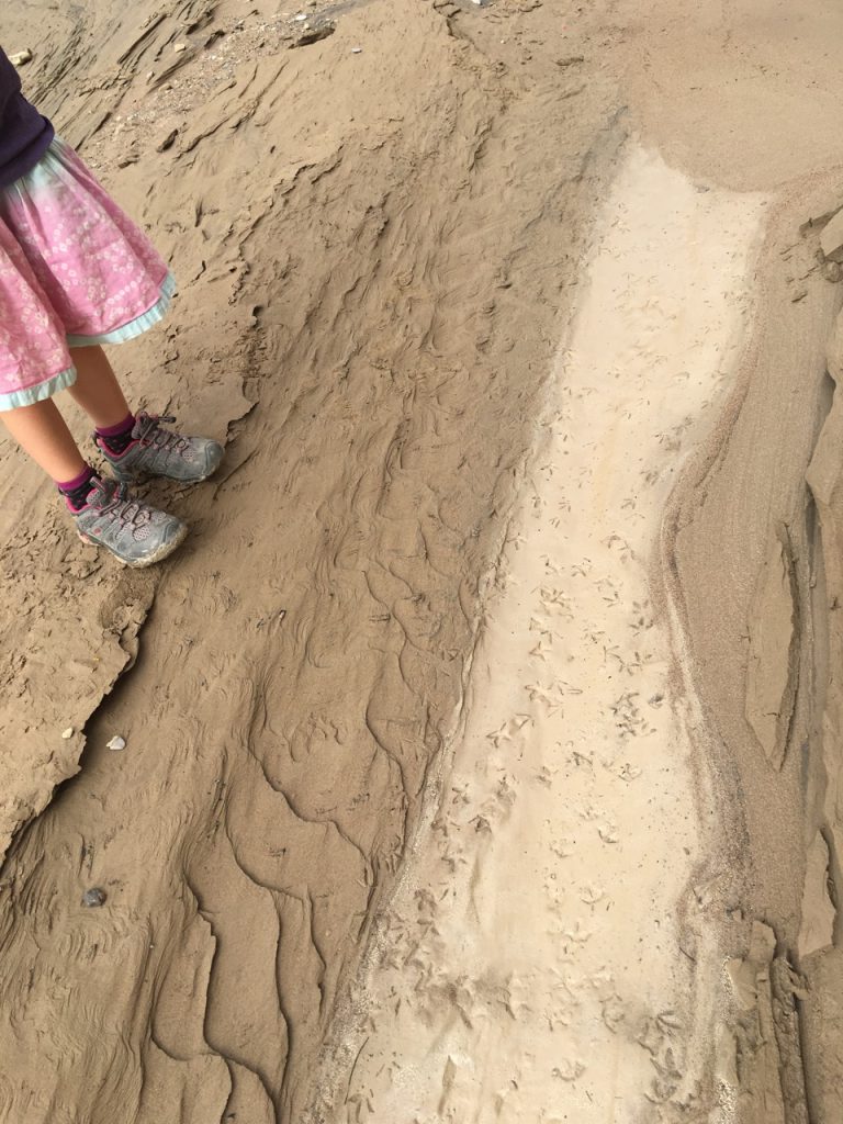 The girls found a “track story” in the mud as well. Track stories are when the tracks of multiple animals tell a story. In this case it was the story of a little bird who ate a horsehair worm.