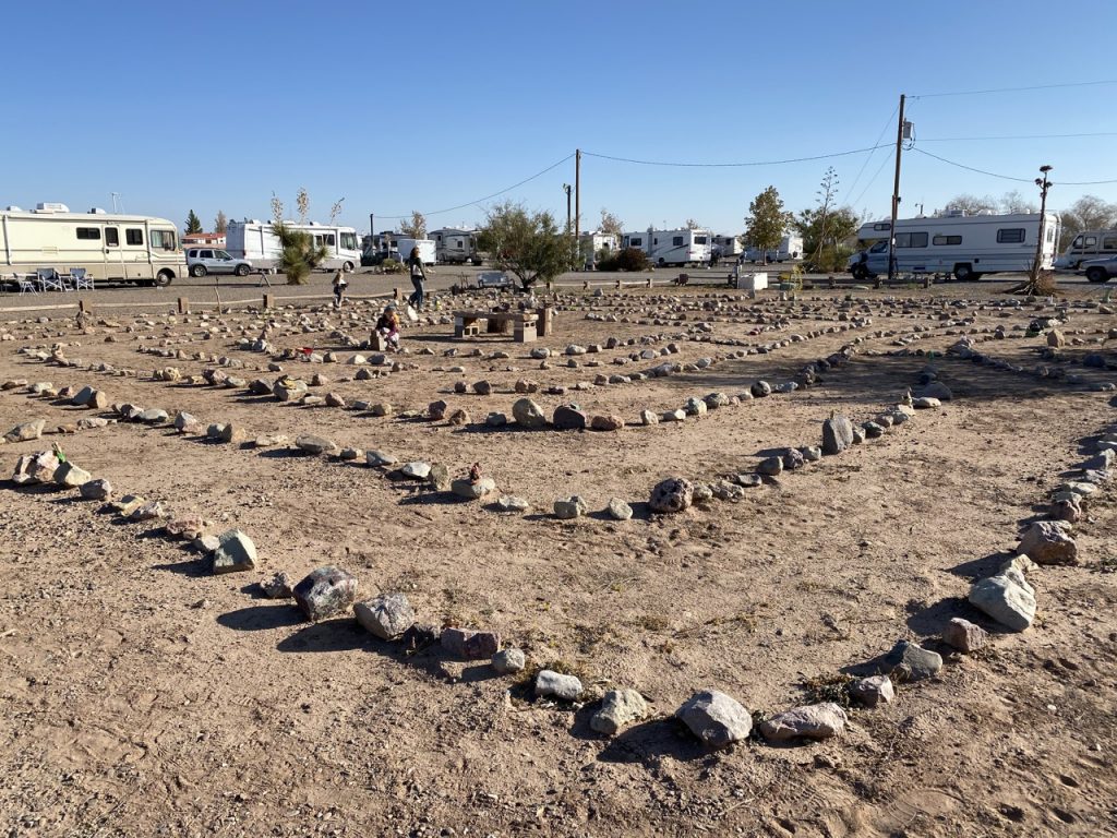 This ended up being such a lovely place to stay! The RV community was built around creating a space for older singles. We were the youngest ones by far and all the sweet RV community members referred to our girls as “babies”, which we got a kick out of. They have organized activities every day which we joined in on one evening. They have a community camp fire once a week. Justin and I enjoyed chatting with all the people there and the girls had fun playing with their small (and very well behaved) dogs and running around in the large labyrinth.