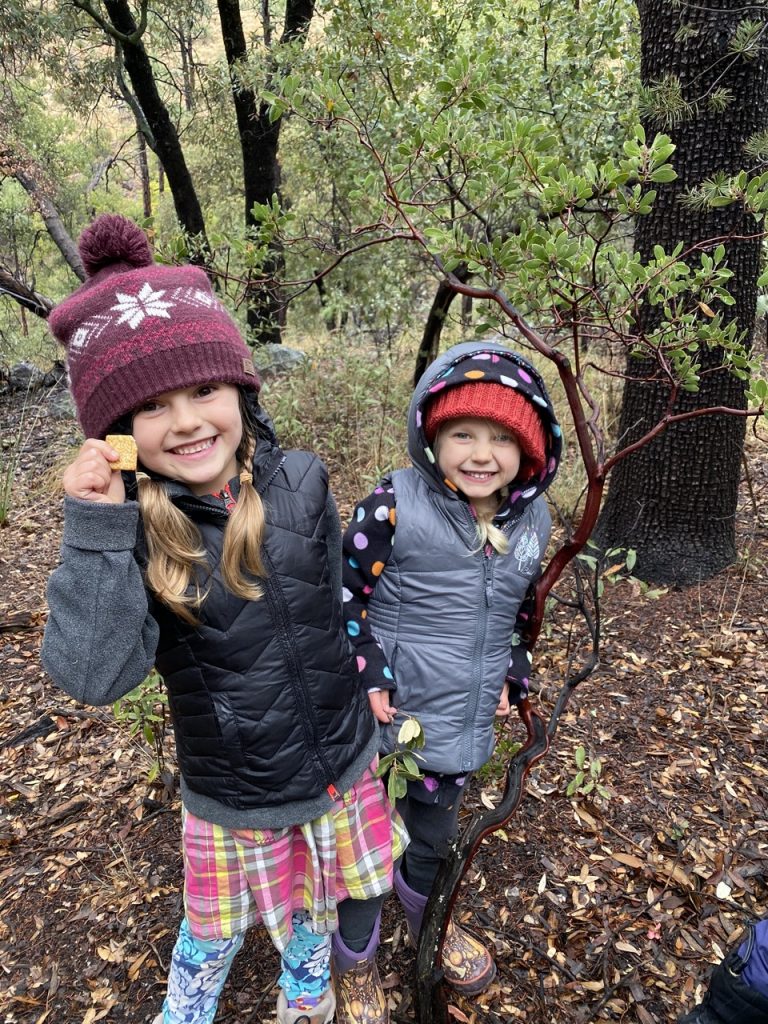 The girls and I had fun watching the bold Mexican jays the day of departure as well as leaving little goodies on a rock we thought they might like such as acorns and seeds we found on the ground.