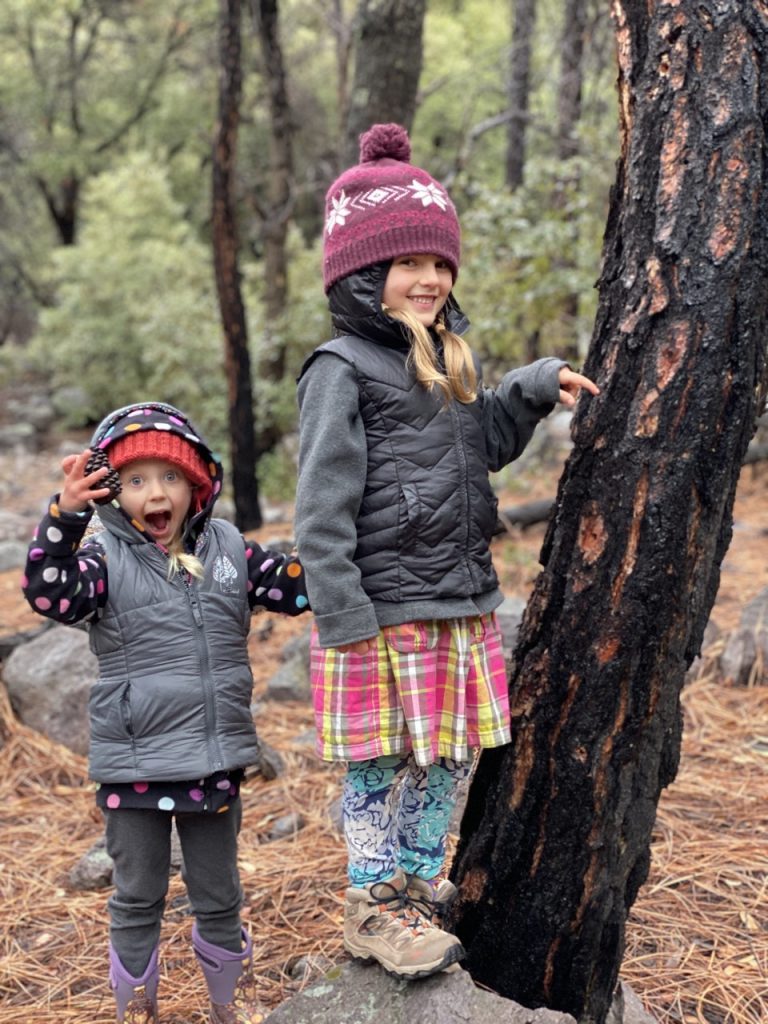 Hours later we arrived at our National Monument destination. We had dumped our tanks before arriving and decided that since we would only be staying for a few more nights to fill up the tanks again with showers/baths all around. It was a rainy cold morning so we gave the girls each a long awaited long bath. I do wish we were able to do this more often. It makes us all happier when they’ve had some good bath time fun and are clean.