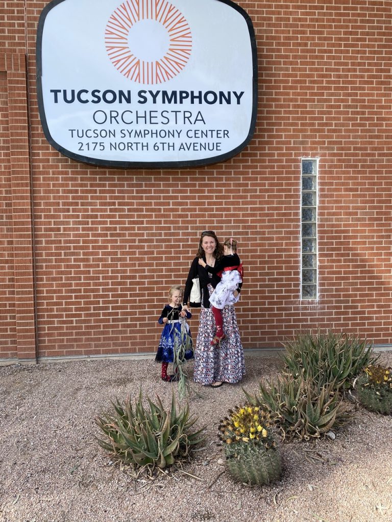 Something we learned from our first day in Tucson is that advertisements don’t seem to match reality.  I had looked up some events we could check out over the weekend.  The first was a symphony that was free for kids and families, offered only a handful of times per year offering.  The second I found was a Winterland Craft Fair that in addition to craft venders they had a bouncy house, a train, face point and food vendors.  Justin found a brewery that said it was kid friendly giving customers front row seats to the local trail that passes through town frequently.  This all sounded like a blast!  The girls got all dressed up and we made a day out of it.