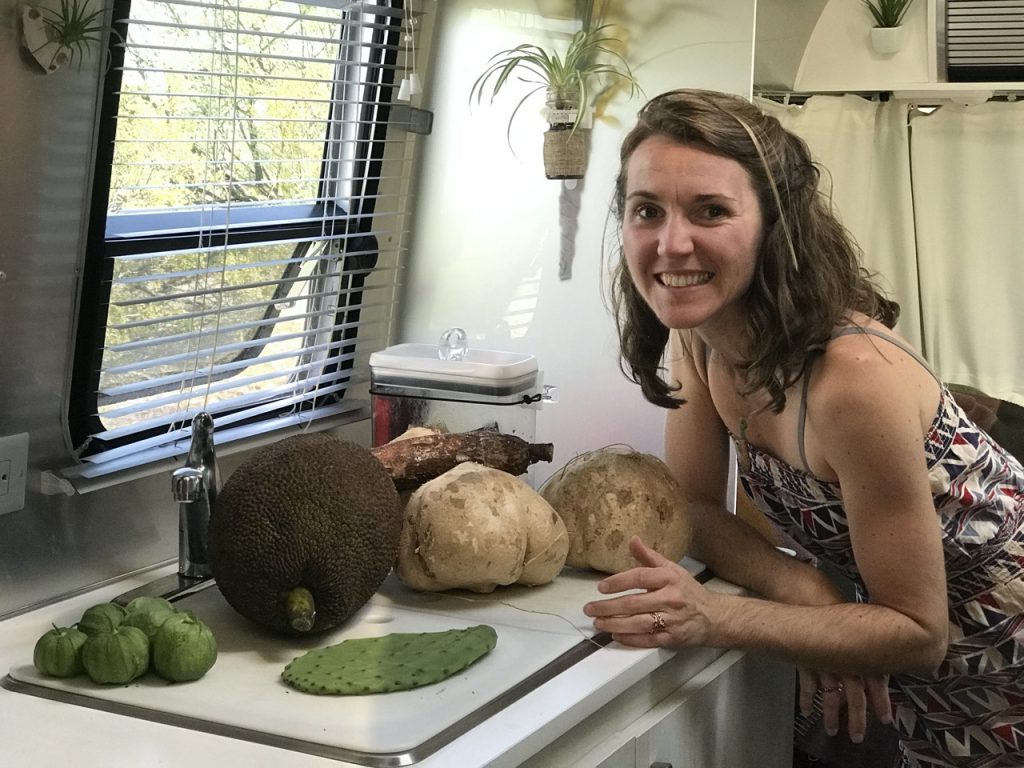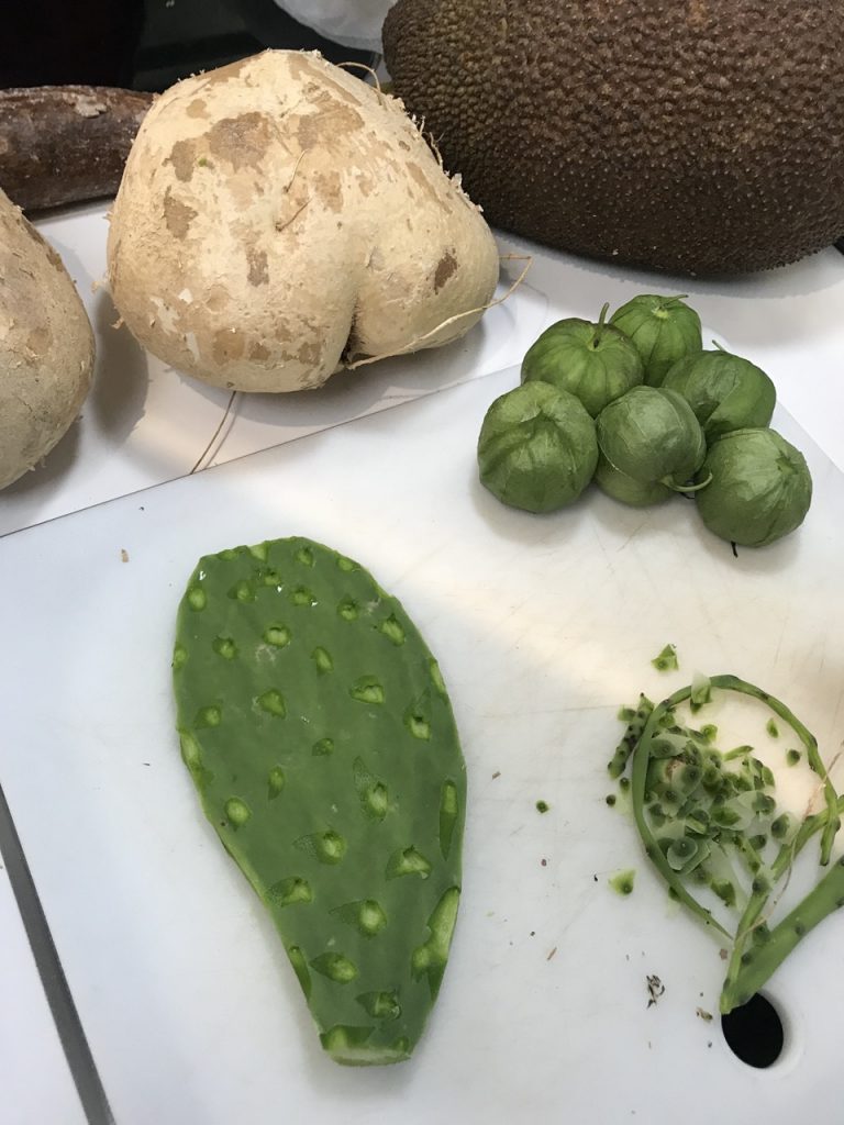 That evening I had to learn how to prepare these foods.  We ended up grilling the prickly pear after I cut all the spikes off and nibbling on raw ripe jackfruit and jicama.