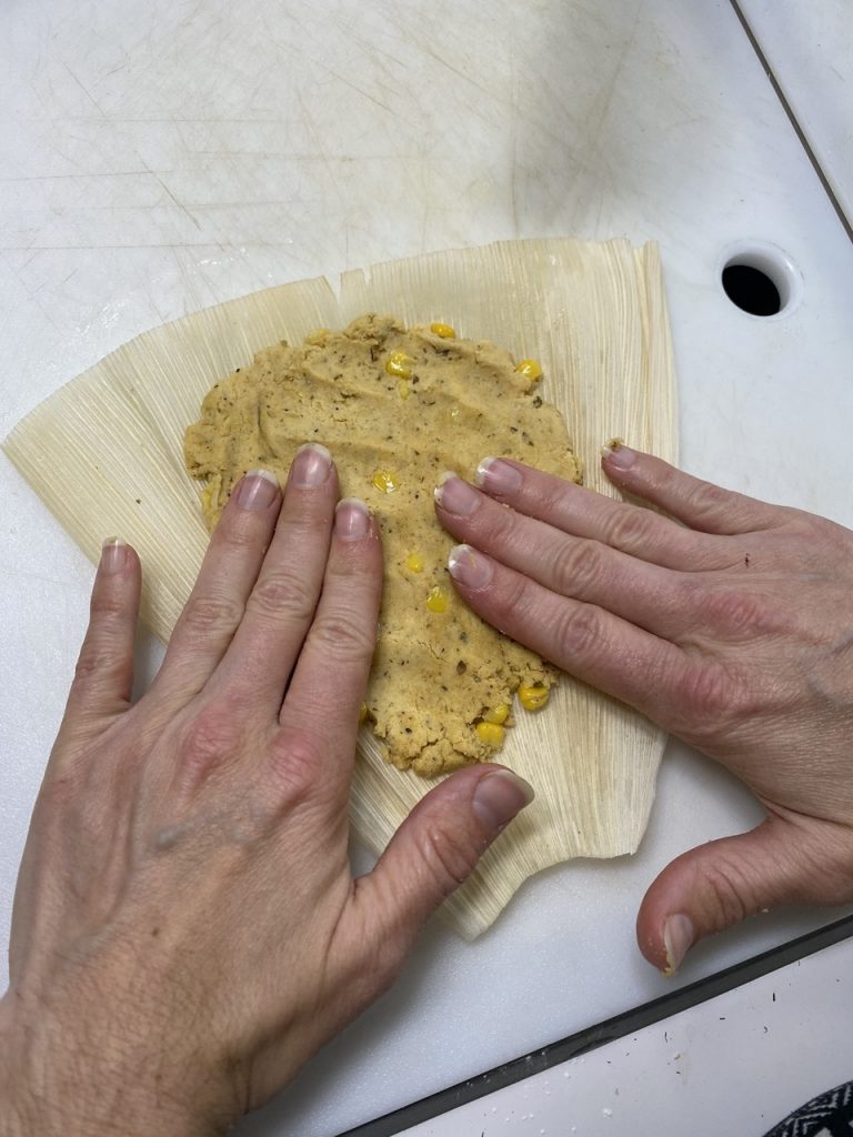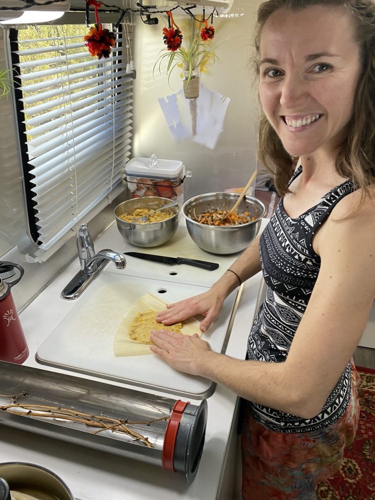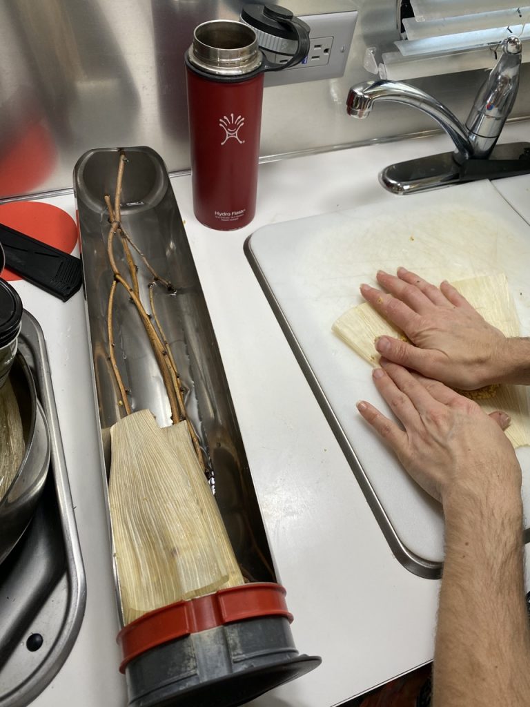 In celebration of the cheer I made tamales for the first time. We made do with what we had as far as a steamer. I shoved mesquite branches into the solar oven, filled the bottom with water then balanced the stacks of tamales on the top. It worked beautifully and they turned out great! They were fairly time consuming to make since I had to cook all the inner veggies separately but if you already had cooked veggie leftovers from grilling or a stir fry it would be easy peasy. I’ll definitely be making these again!