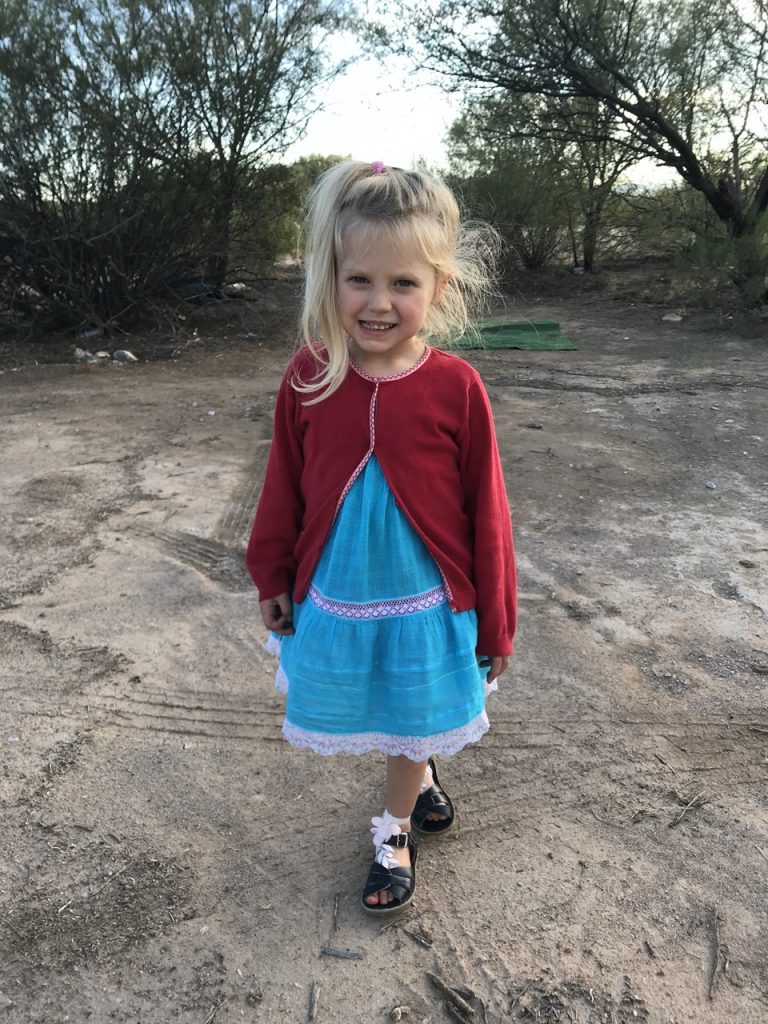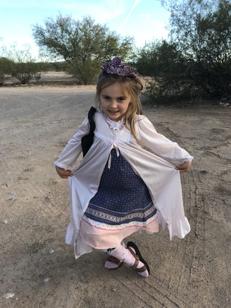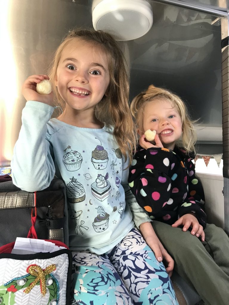 After the hike the girls then dressed all up to become “greeters” of the BLM land we were camping on. As greeters they wave to the newcomers and greet them with a smile. The girls set up the Christmas tree and some of their play linens to make their greeters station fancy. Such cuteness! The people they greeted were all smiles.