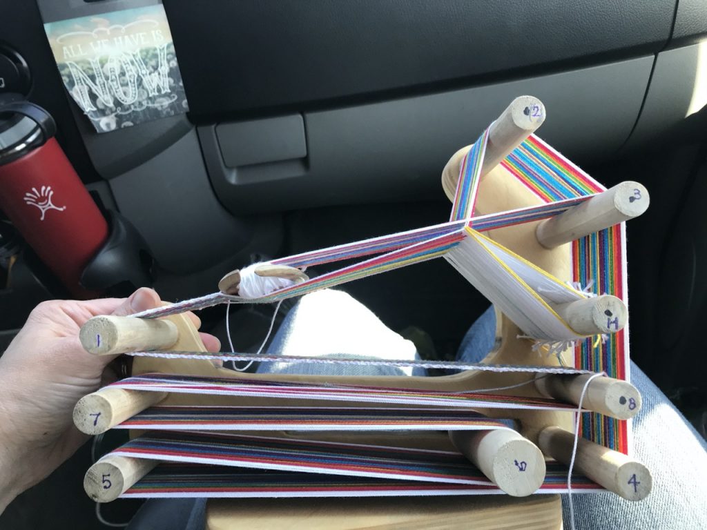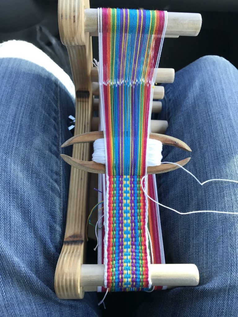 The girls and I have also been working on my inkle loom, a Christmas present that Justin so lovingly got me.  It’s a lot of fun and the thin patterns are super quick and easy.  I’m still testing out new patterns as I create or find them and testing out modifications but it has been fun to see the results.  It’s perfect for car rides as it sits in between my legs as I weave.