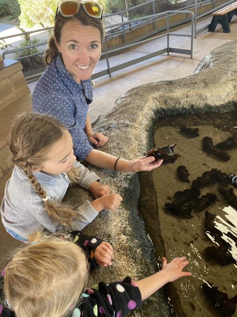 One day we checked out the discovery center which was kind of like a zoo and aquarium all rolled into one on a small scale.  They are undergoing a lot of construction right now and I’m guessing due to that the parking situation is a bit unclear.  Upon entering the driveway leading to the center we saw a parking lot to our right but saw that the center was still very far from us.  We figured there must be a parking lot closer and the lot we had seen must be an overflow lot as there were only 3-4 cars in it.  We drove along the narrow one lane road until we reached the discovery center only to find that the parking lot a mile back WAS the lot we were supposed to park in!  Apparently there was a shuttle that periodically took trips from the parking lot to the discovery center.  The girls had fun on the shuttle when it picked us up.