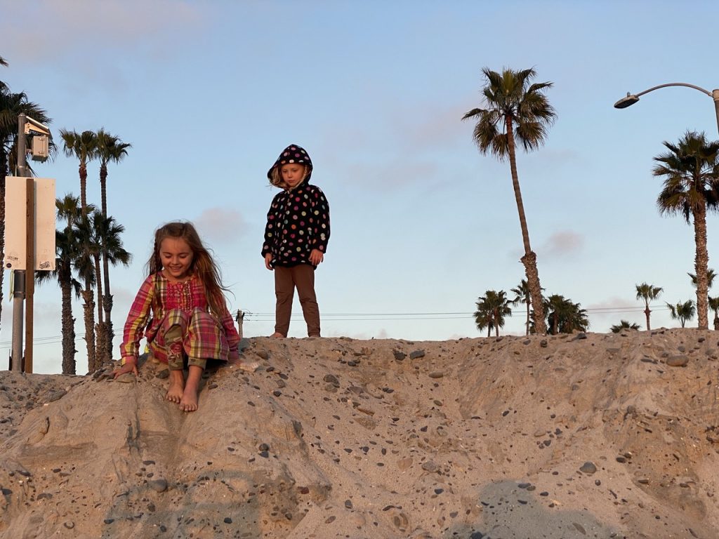 However, despite the drawbacks of the campground itself we had wonderful friends to hang out with and were a semi-short walk to a number of things.  After crossing a fast moving 4 lane road there was a cute little walk to the beach where the kids could play and we could enjoy the sunset.  On the beach path there was also a large playground that our little one enjoyed.