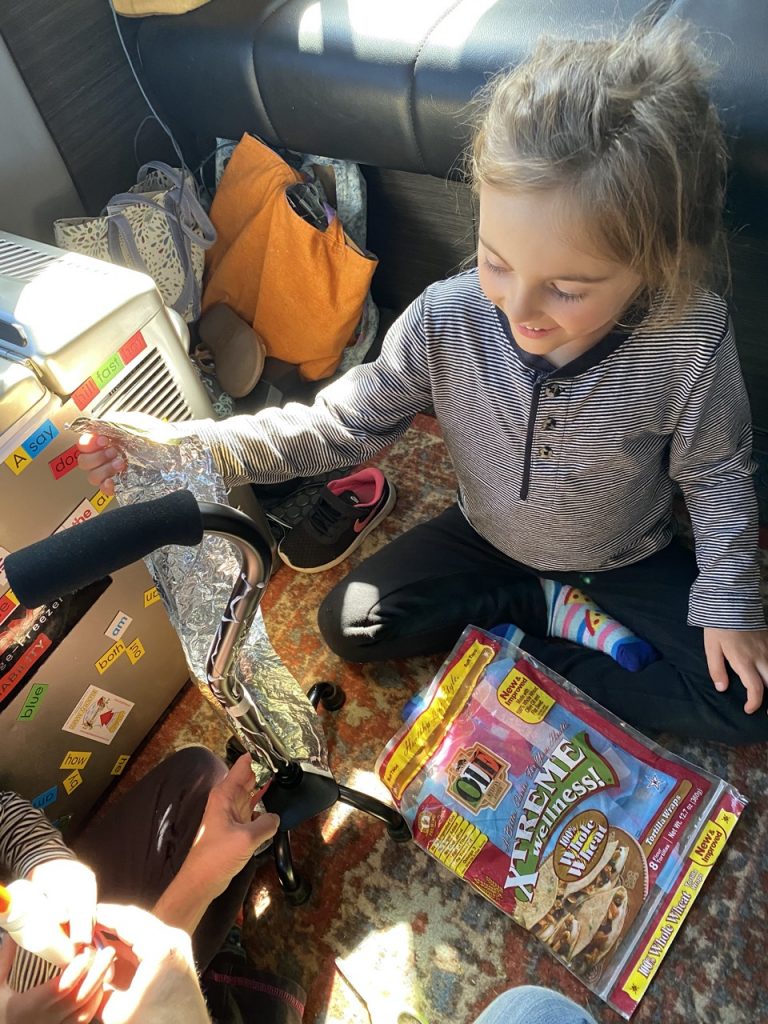 The day after we arrived in Oceanside it ended up raining, which was quite a change.  We hadn’t experienced rain for a while now on our trip.  We took the rain as an opportunity to take the train into San Diego and go to the Children’s Museum.  The train station was a little over a mile away from the campground and we made the girls a little rain shelter out of the wagon and sarongs.