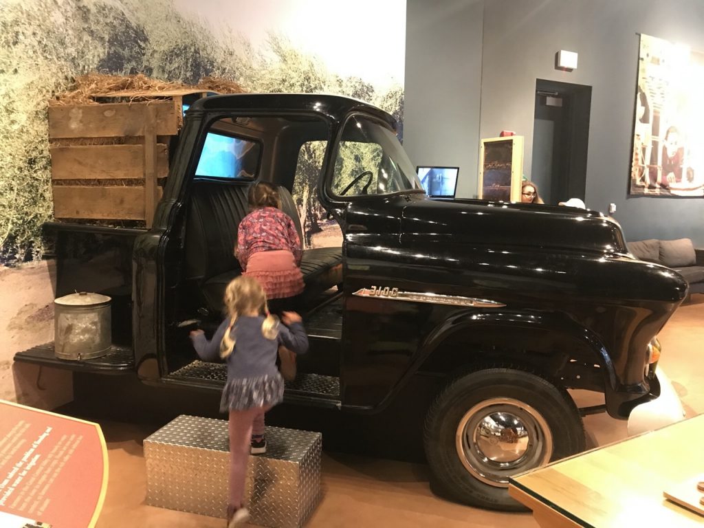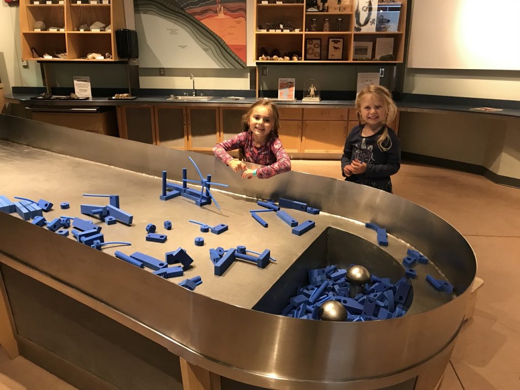 There was a pit filled with tire shreds with metal objects hidden below. The girls were given metal detectors and set to the task of finding “treasures.” The museum was smart and had the metal items anchored to the floor so other kiddos could find them too.