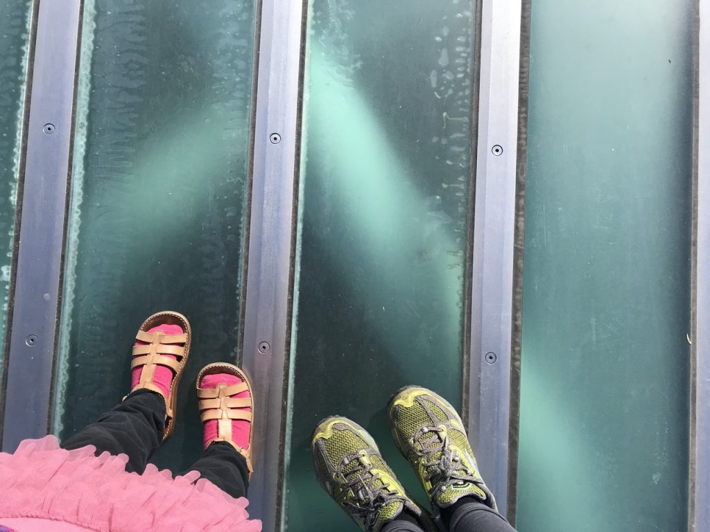 However, walking over it and looking down at the crossbars below our feet through the glass was a weird feeling. Looking through the holes in the glass made for the giant cables at the water below was definitely a strange feeling as well.