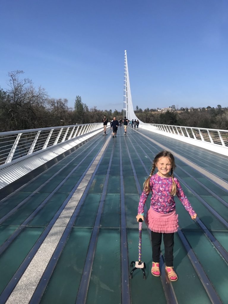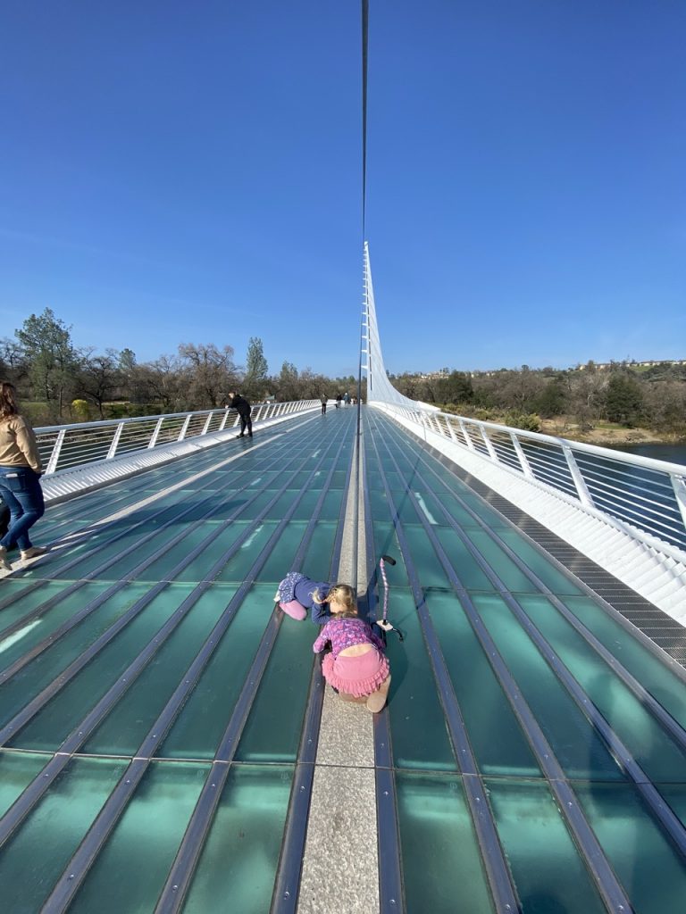 There were parts of the museum that we missed but we were wanting to get on the road semi-early since we didn’t quite know where we were going to camp that night. But, before leaving the area we did a quick walk across the glass suspension Sundial Bridge. When Justin first told me about a glass bridge I was quick to say, “No way!” Then I saw pictures and decided it looked safe enough.