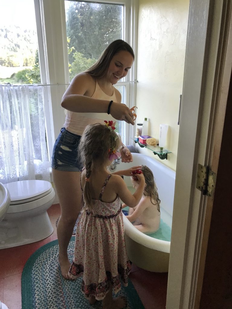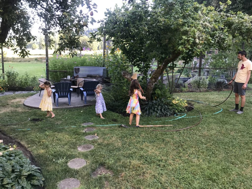 The second trip back to Eugene we brought my niece Talia while Justin drove the van pulling a cargo trailer FULL of stuff (how can we have that much stuff??) and I drove the car with the girls. The last trip Justin did himself. It wasn’t until we had been at Crow Farm a month before Justin got to spend a full weekend with me and the girls. It was so lovely having my niece with us. It was the first time she had been quarantined long enough that we could hug and snuggle her!! It was like a dream come true for the girls!
