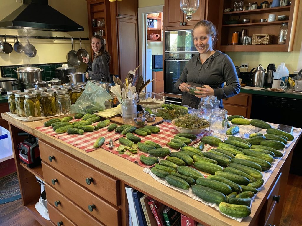 We broke in the kitchen with lots of baked goods, lots of apple/pear treats and the Thomas family came for our yearly pickling party. 50lbs of cucumbers canned by 10am isn’t bad and we had a lovely time doing it. Though, to be accurate we did prep the night before. The boys even helped for the first time this year. Rachel and I saw that the boys had nothing to do at 10pm so, we put them to work! They were good willing sports. Christmas pickles!