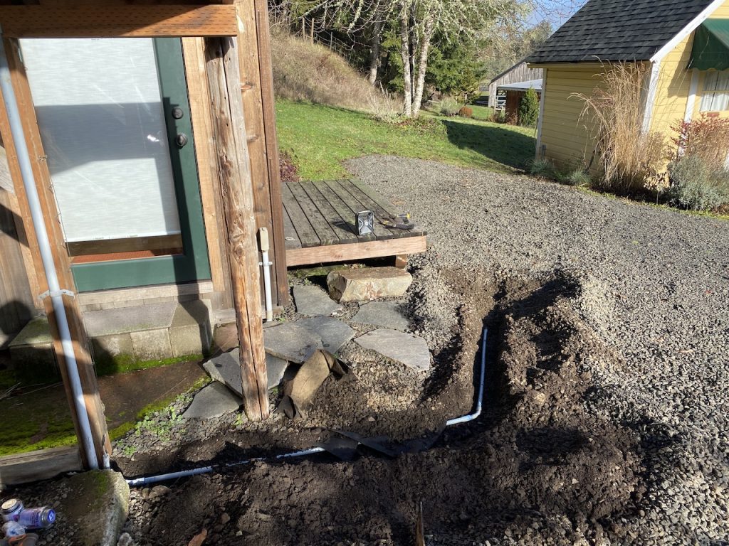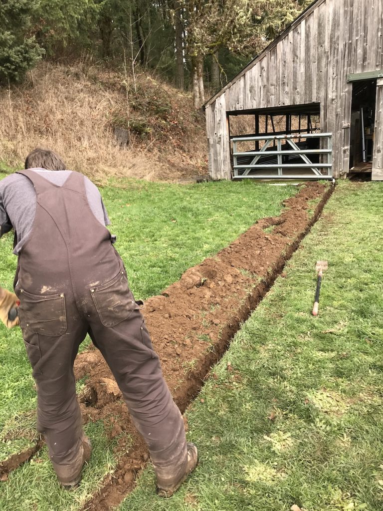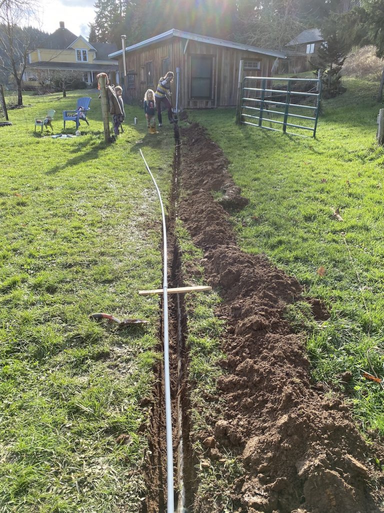 Part of Justin’s internet plan for Crow Farm involved hooking the main buildings up to ethernet (wired internet). This means digging ditches to all those buildings! Luckily we had bought the correct digging tools for the first ditch we dug so the following ditches were easier.