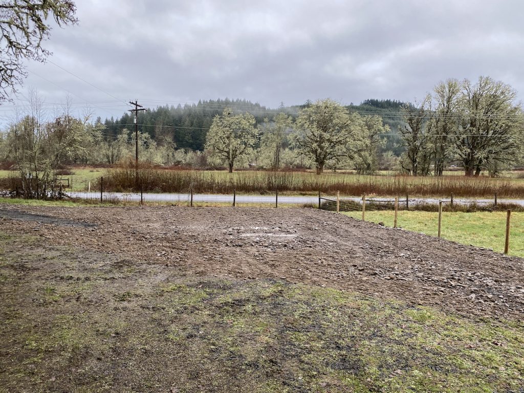 Crow Farm definitely had the potential for this but it wasn’t quite practical for the big rigs to have space to get in and out with ease. There were two “driveways” at different levels leading to two of the three bays of the barn. This was super handy for moving vehicles in and out of the barn but tricky for a camper to have room to park on the narrow path. It also dropped off quite abruptly to the edge of the north hayfield leaving no room for a big rig to turn around. In an effort to make our place more inviting for our on-the-road friends we decided to widen and level this pad.