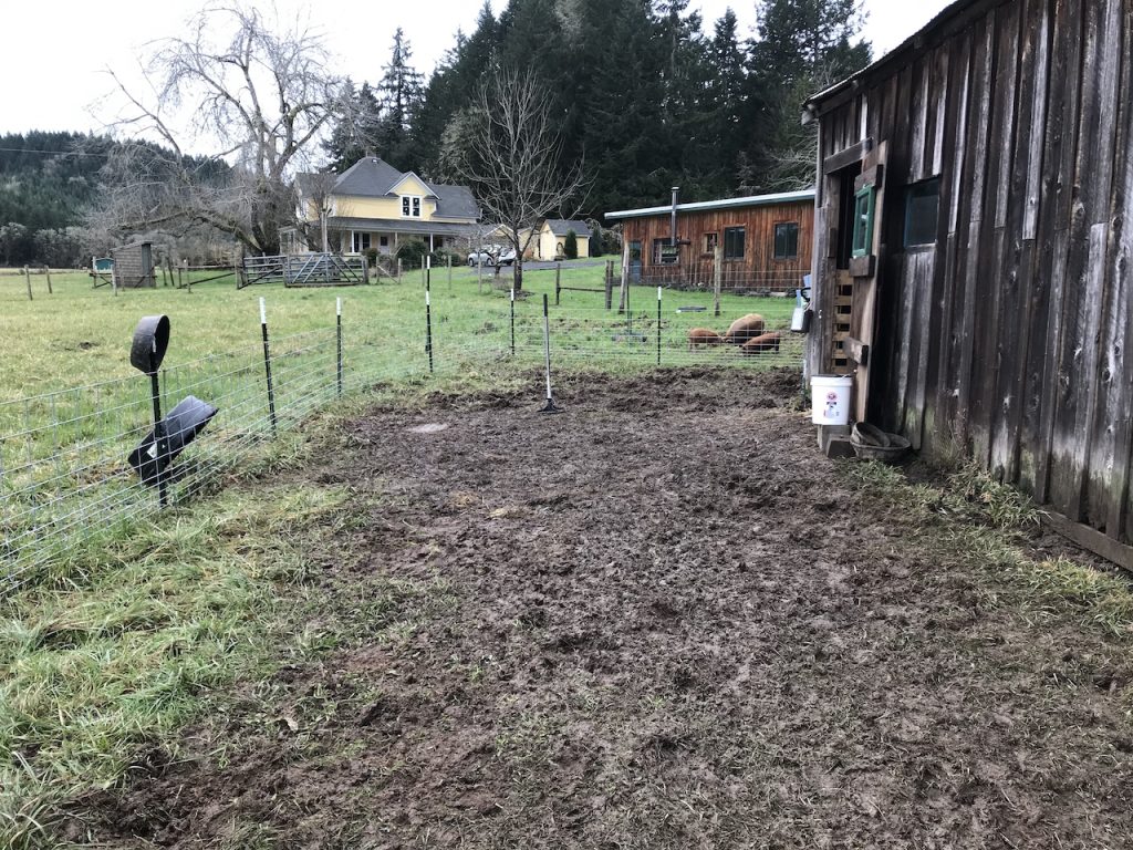 Speaking of rain, in the winter rains our outdoor pig pen quickly turned into a mud hole! A really, really big mud hole that was swallowing us all up alive every time we walked on it. The piggies didn’t seem to mind but we didn’t want them to get hoof rot and thought they deserved a space that was comfortable to lay on and play without slipping and sliding about.