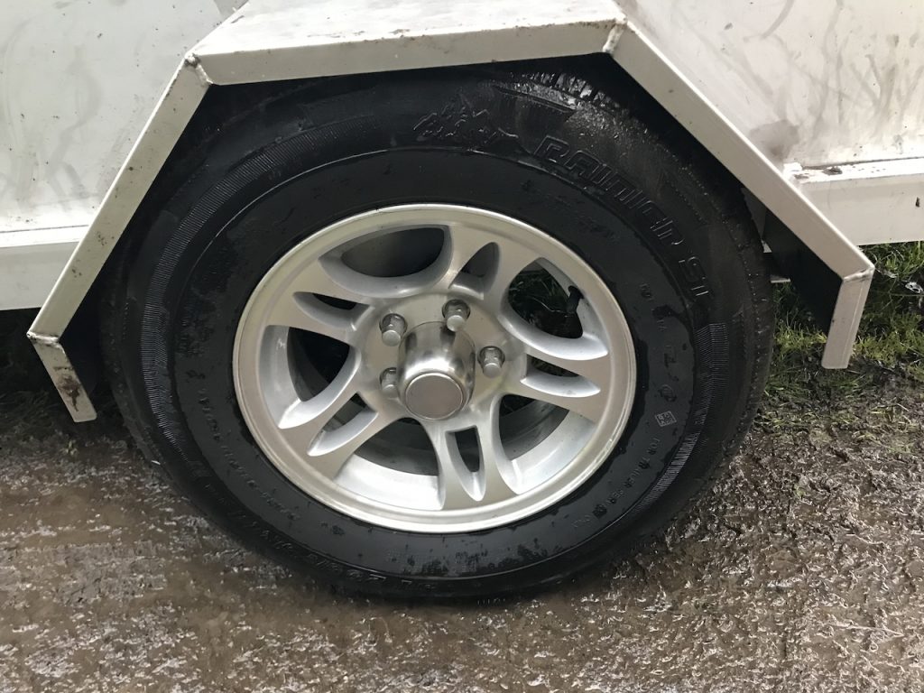 Justin used our trailer to pick up 1 yard of wet gravel, fencing and 15 poles along with some other things in our van. He quickly realized that the trailer was bottomed out and had to move most of the poles and fencing into the van. Even then, when he rolled up the road and hit a small bump I could hear the tire on the trailer rubbing on the wheel well. Next time we’ll have the gravel delivered via a honkin’ dump truck.