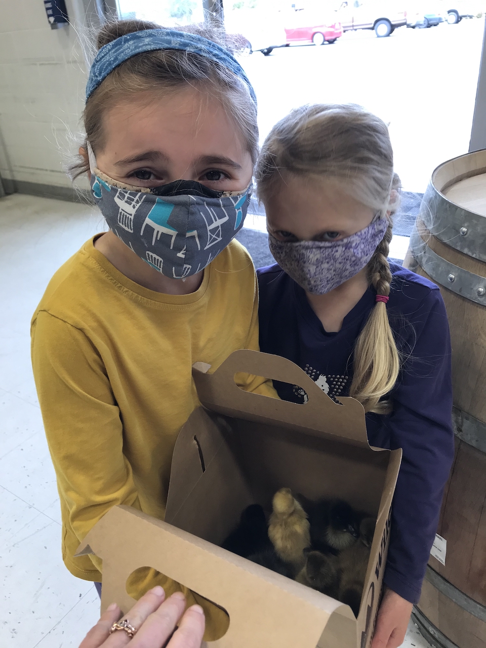 The girls and I got a couple errands done as we could being COVID cautious but ended up waiting, mostly in the car, for 6 hours!!!! I kept calling to check in with the ducking delivery and over and over they kept telling me, “Any time now.” Boy was I glad we waited though. When the time finally did come and they arrived so did a whole flock of people. Things started getting kind of nasty! People were shouldering ahead of each other shouting, “I was here first!” Thankfully because I had been calling almost every hour for 6 hours checking in with them about the ducklings they let us have first pick. And by “first pick” I mean the store lady grabbed the number of duckings within each breed that I wanted. They were very specific and strict about nobody touching the ducklings or choosing which one they wanted. Probably wise with how nutty people were acting! By the time the girls and I got to the register (about 3 minutes later) the lady announced the ducklings were gone! You’d think stores would order more ducklings with them being in such demand. The girls were in heaven snuggling with the ducklings on the drive home. Those sweet little ducklings fell asleep in their hands. So precious!