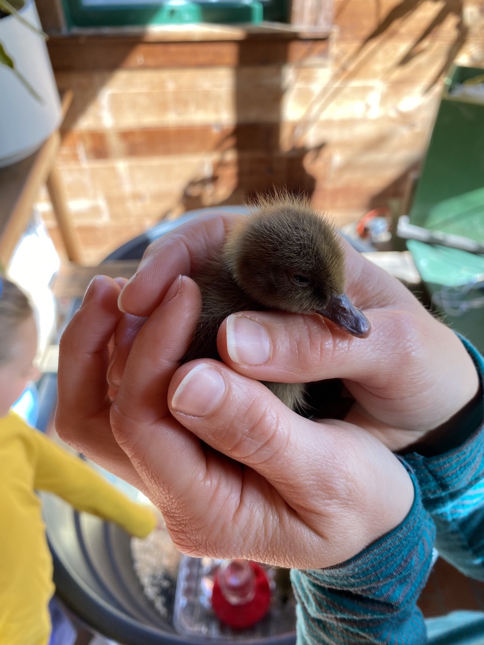 These ducks are keeping us entertained that’s for sure and boy do they grow fast! In the month that it took me to write this post my descriptions of them changed drastically from tiny, fit in the palm of your hand ducklings to giant duck taking up your arms.