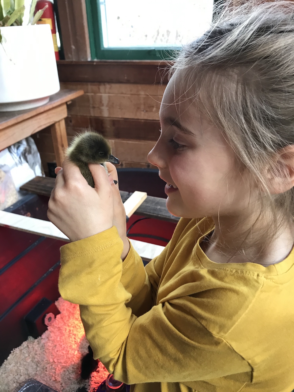 The girls and I decided to stay in Eugene for fear we’d miss getting ducks if we went home in between. There were 5 other people waiting at the farm store door upon arrival as well, all eagerly awaiting the ducklings. The girls and I did schooling from the car with the supplies we had and waited the 4 hours until noon. Still NO ducklings! We were deflated and decided it would be best to go back home. Thankfully I had emergency granola bars in the car and had packed some fruit for a snack. We later found out that all the ducklings and chicks that were sent within that week all tragically died due to the unusually cold weather that swept through the US. It got so bad that the USPS actually put a ban on all livestock shipping. So very sad for those sweet little birds.