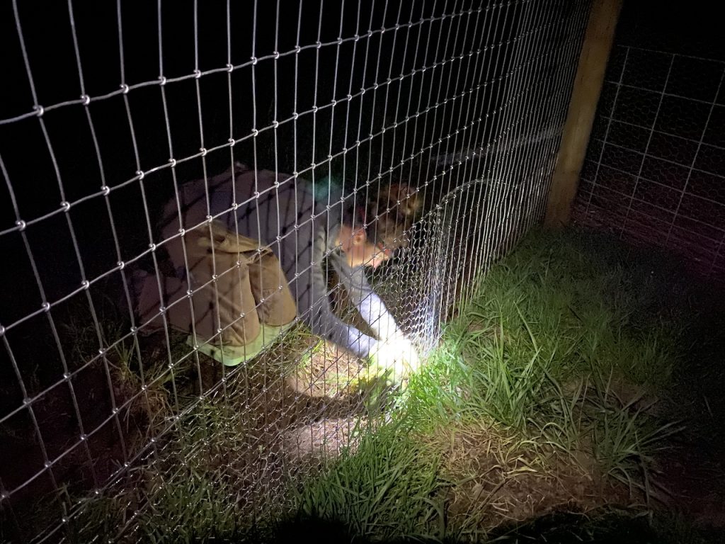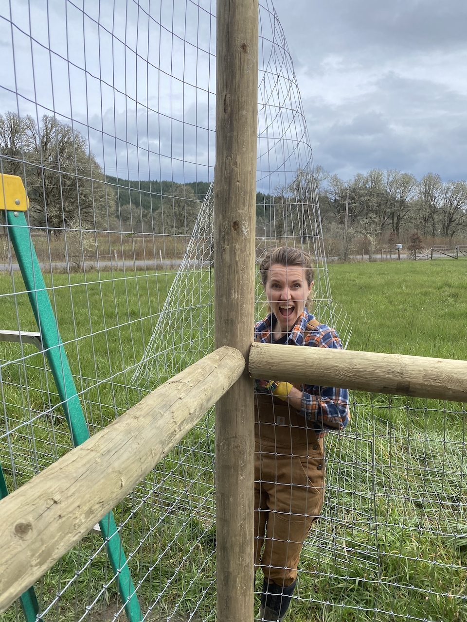 Once the decision was made for us to get ducks that set the ball in motion to create a more predator proof animal enclosure. We figured the pigs are bigger and VERY loud when they want to be so it was less likely for a predator to come after them. But, if tasty ducks are in the same area, they would make an easy meal for a predator. The saying isn’t “sitting duck” for nothing. Once the predator had a duck snack they would most likely come back and might be tempted for a pig snack too. The whole thing just seemed like a ripple effect so…on to more pole digging we went!