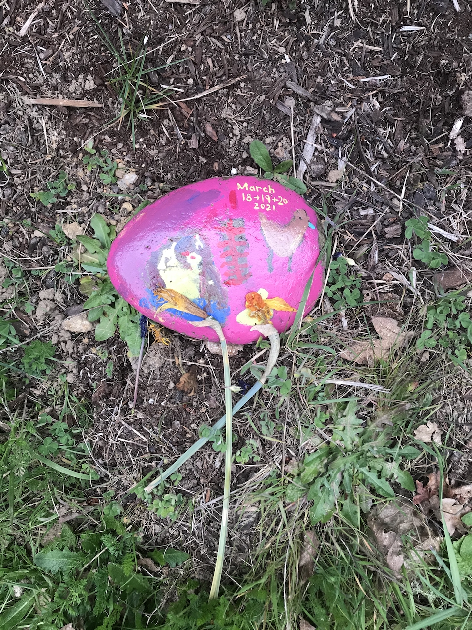 We noticed soon after we got home that one little duckling wasn’t moving around like the others and it was having trouble breathing. This was the one that our youngest had deemed her favorite. Within a couple hours of it coming to its new home it sadly passed away despite our attempts to feed it through a dropper. Oh, the tears! Our girls had waited so long to have these ducklings and went from being so happy to being so broken hearted. Our oldest kept saying, “That sweet duckling’s life was mostly in a box. It never got to walk on grass or meet the piggies.” Sadly this was true. Such a rough journey it must be for those little ducklings. The very next morning we noticed another exhibiting the same signs of difficulty walking and labored breathing, though the day before it had been moving about without any noticeable problem. We waited to bury the first ducking for fear the second would soon pass. Sure enough, by afternoon the second sweet little duckling passed away. We wrapped the little ones in cloth and buried them where they could see the sunrise each morning and decorated their grave with flowers. The girls painted a stone to mark their sweet short lives. Our little one woke in the night with sad dreams about the ducklings. Thankfully the rest seem to be doing well! We’ll see how many are drakes and how many layers we are actually left with. They are all just SO so very cute!! We know they won’t be little long so we are soaking it all in.