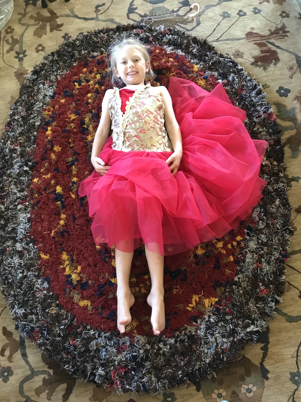 For a while now the girls and I had been braiding wool scraps together into long strands. It was a fun things all of us could do when we had some down time. Well, we finally braided enough for me to make a rug! The sewing together of the braid was definitely the most tedious part. I first made the mistake of taking it on a car ride and sewing it on my lap. It then became a lovely wool bowl! Haha. After unstitching and restitching it while it was on a flat surface it worked great. It turned out really thick and cozy.