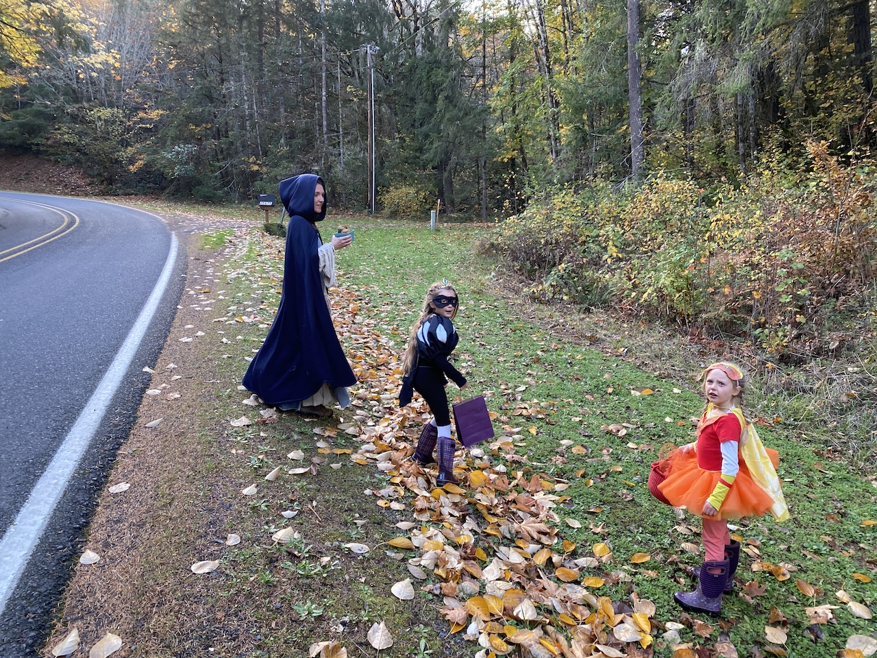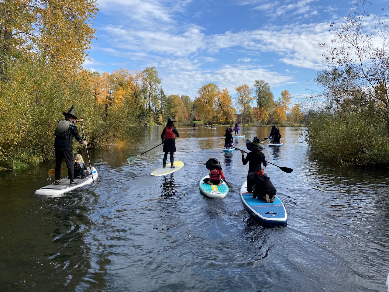 Another Halloween first for us this year was going on a SUP (stand up paddle board) witches paddle down the canal in Eugene. There were about 100 witches and warlocks that paddled down the canal in full costume. To my amazement, I didn’t see anyone fall into the chilly water! I thought for sure at least one would fall in. I have to say, I was a little disappointed. 😛 I dressed us all in wetsuits under our black witchy costumes just in case we fell in. It was really fun and one of our neighbor’s with a kiddo a similar age to our youngest came along as well. Costumes ranged from simple to extravagant. We’re definitely going to do it next year as well if it’s being held.