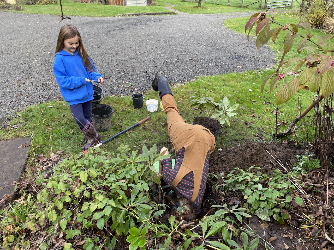 Once we were back on the farm the girls took advantage of the nice weather too and put on regular concerts by the barn. The gravel and mulch piles made for a nice set up for a stage.