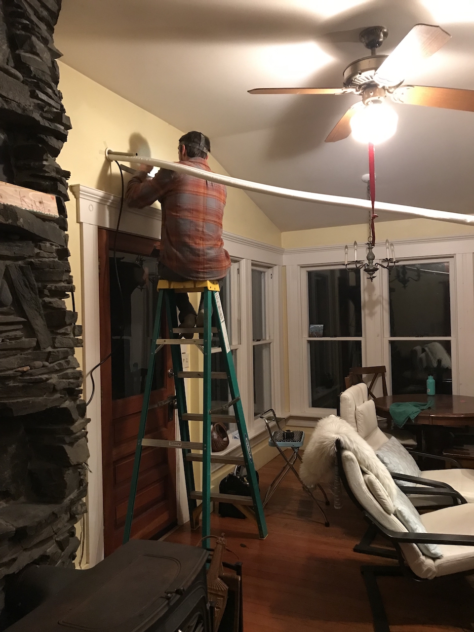 All the installations had their own quirks and tricks to get them right. Speaking as a helper I think the kitchen was the hardest to install. It involved going through the roofing above our deck, around a corner and then down the exterior of the siding. Blindly fishing everything through the outdoor ceiling and around a corner was less than ideal for sure. But, with patience it worked and we enjoy its heat every day.