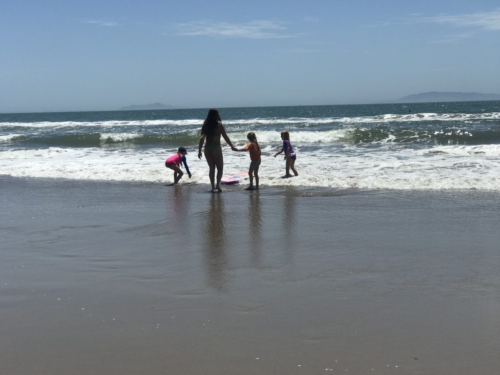 With full bellies and smiles on our faces we headed to the beach. The sun was out and it was a beautiful day to be by the water. My niece and both girls were brave enough to get into the water. Justin and I watched the fun from the sand. I dipped my toes in for a little bit before jumping away with pain from the cold. Oceans are just so cold! It was a nice relaxing afternoon and fun to know my niece was living so close to the beach.