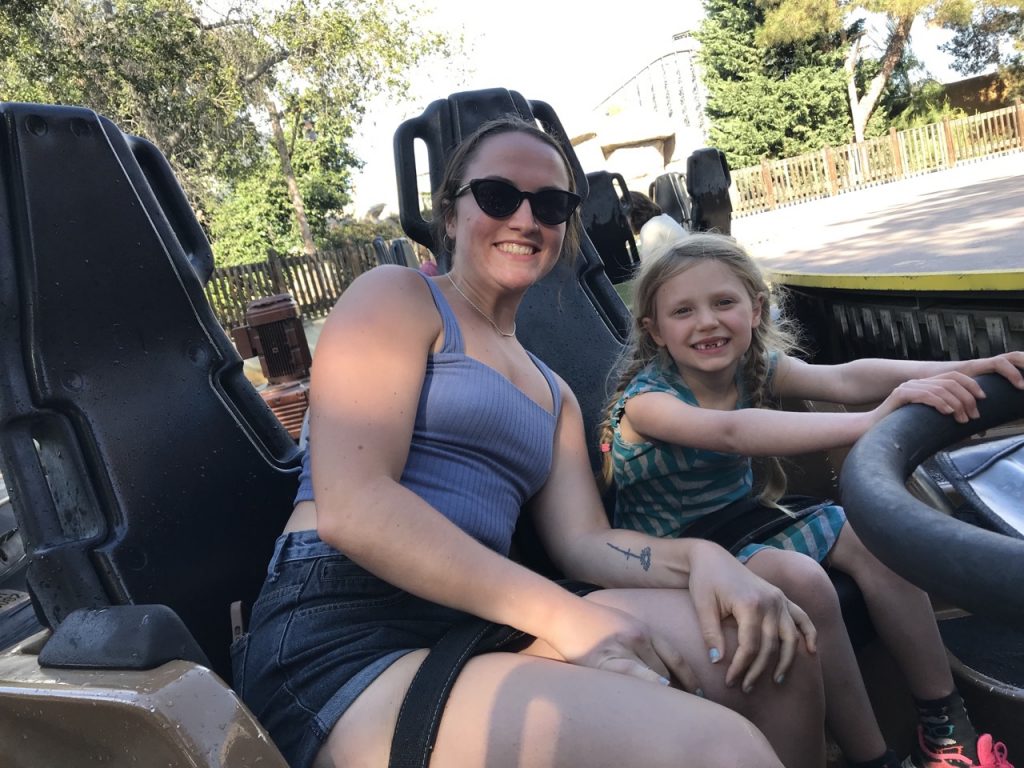 The next day, Sunday, was our day to spend at Knotberry Farm. Though the name makes it sound like a berry picking place, which would have been lovely too, it is actually an amusement park! We have been tentatively planning a Disney Land trip for the winter of 2023 so Knotberry Farm would be a good test of how comfortable the girls were with rides.