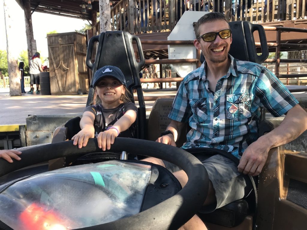 Overall the girls did pretty good and it was a really fun day but there were some blips, as is to be expected. Some of the more popular rides had lines over an hour long. We ended up standing in the log ride line for a little over an hour. When we got up to the entry point of the ride our 8 year old was adamant she was not getting on the ride. To be fair she had told us she didn’t want to go on the ride in the first place but we were trying to warm her up to the idea while in line. Once our youngest saw that her big sister wasn’t going to go on, she decided she wasn’t going to go on either. She decided this, however, after my 8 year old and I had already left the ride so my niece and Justin couldn’t send her with me and ride just the two of them. So…we waited over an hour in line for a ride we didn’t end up going on. Oh dear!