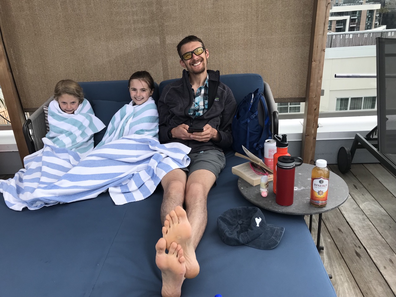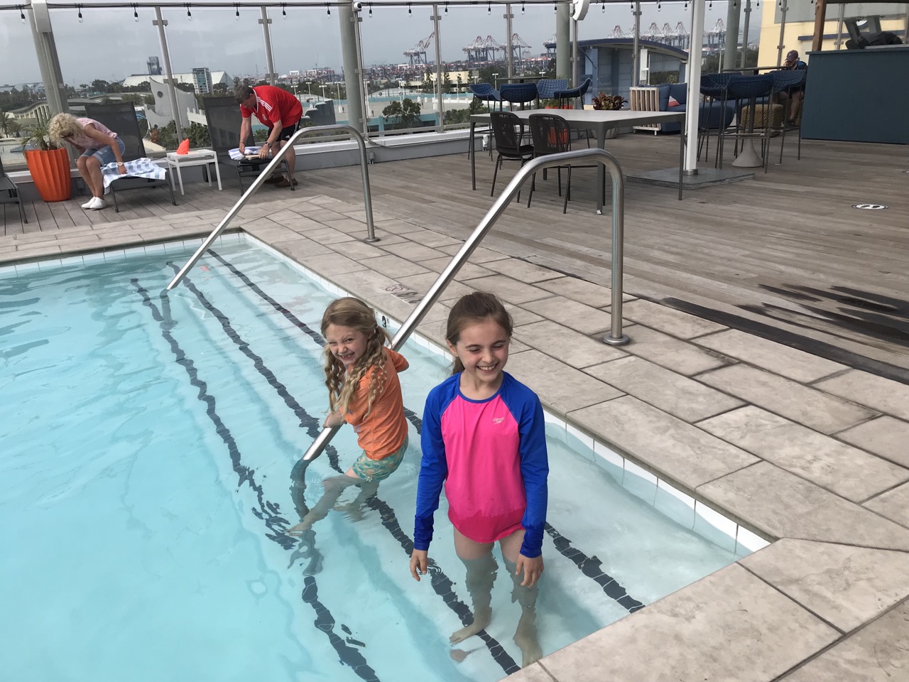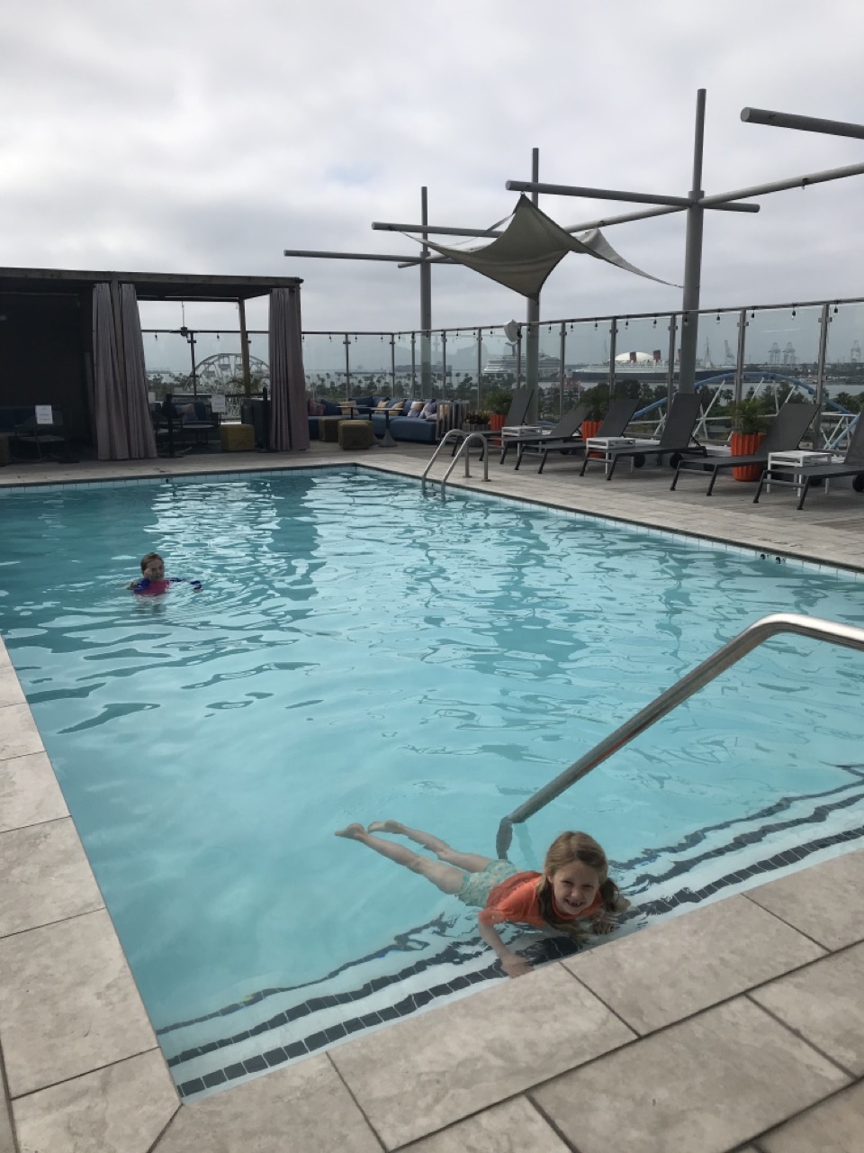 There was also a rooftop pool which was pretty neat. It was pretty chilly for a dip but the girls didn’t seem to mind until they got out and were freezing. The rooftop gave us a good view of the city below and had great lounging options.