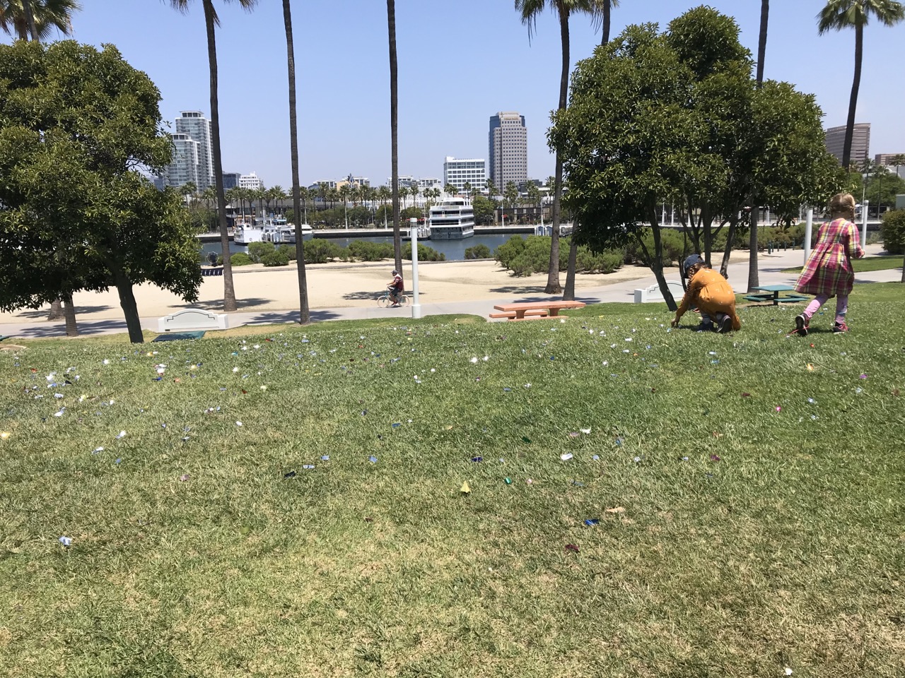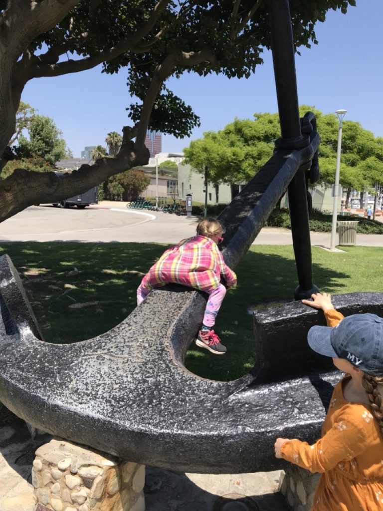 Before our flight we took a stroll to the waterfront near the hotel and aquarium. Our original plan was to fit in an aquarium visit before flying out but it felt too rushed so we just decided to get a slow start of a morning at the hotel and take it slow on the waterfront instead. The girls found lot of things to climb on and lots of garbage to pick up.