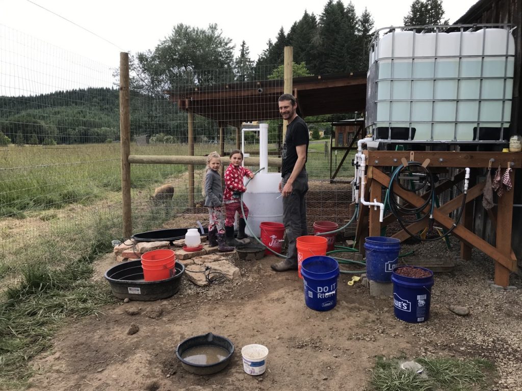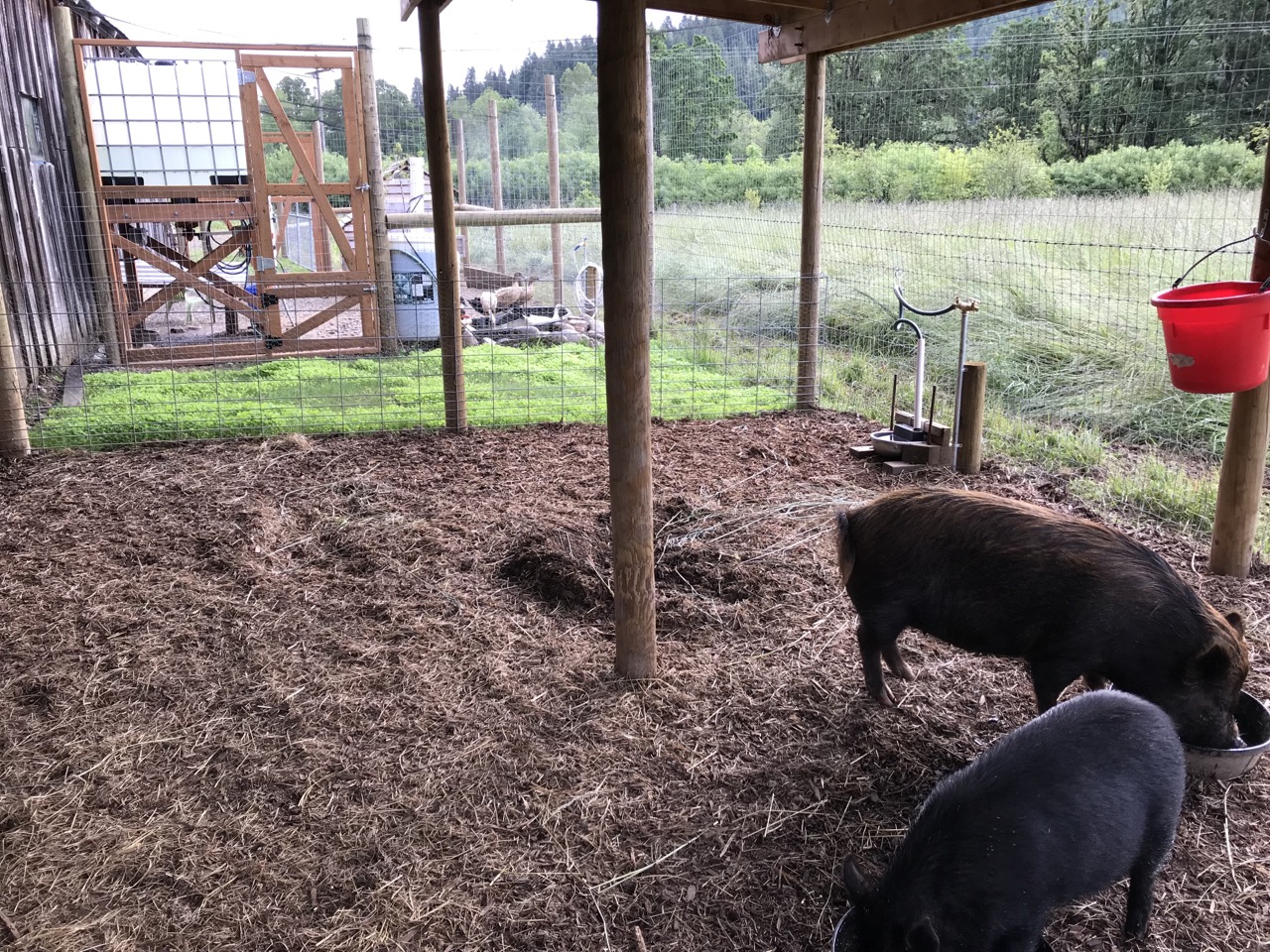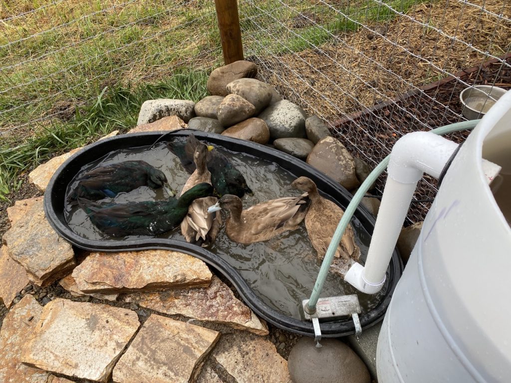 Justin rigged all the animals to have easy feeding and watering so that we could get someone to take care of the farm for us while we were away. The ducks have a pond with a major filtration system which refills as the ducks splash water out of it. They also have an automatic door for the Quack Shack so we don’t have to herd them in every night. The bunnies have an inside palace hutch where they can run around and play as well as an outdoor grassy area where they can hop around, soak up some sunshine and fresh air and nibble on the fresh clover. The piggies have a clean covered area outside, snuggly nooks inside the barn as well as access to the hayfield to graze. Their water bowl self fills as they drink from it. Obviously there are still things a human caretaker has to do including snuggling with all the animals but it is A LOT less work than it used to be.