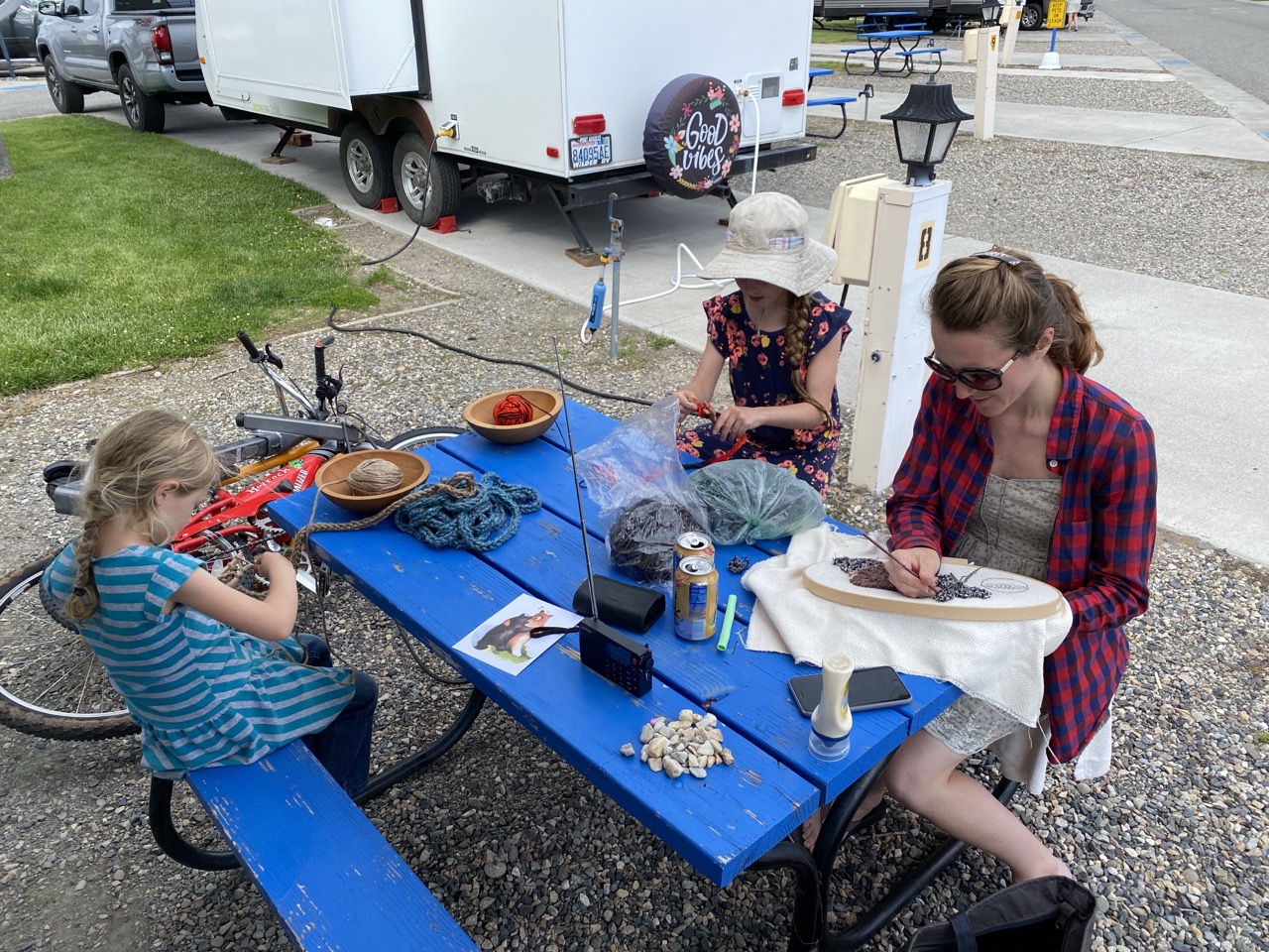 Azul was done at the dealers by noon so we were able cancel our precautionary 2nd night reservation at the KOA and hit the road toward Canada. The rest of the afternoon was used driving and stopping for groceries, arriving at our next camping spot just in time for some Harry Potter reading and bedtime for the girls.